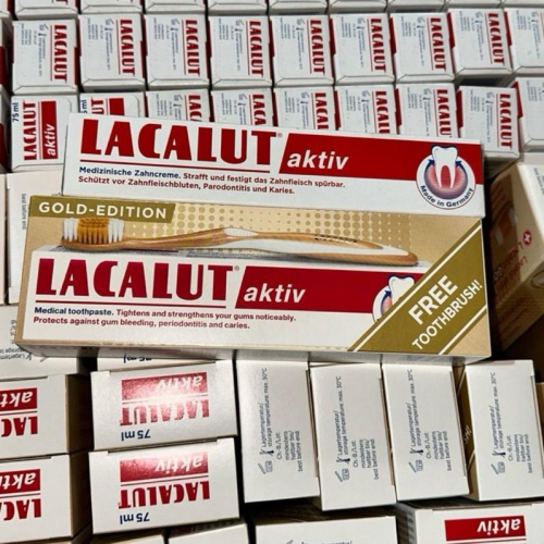 【FHICS】現貨 德國進口 樂固特 Lacalut AKTIV 牙膏75ml/條 +牙刷 牙醫師推薦