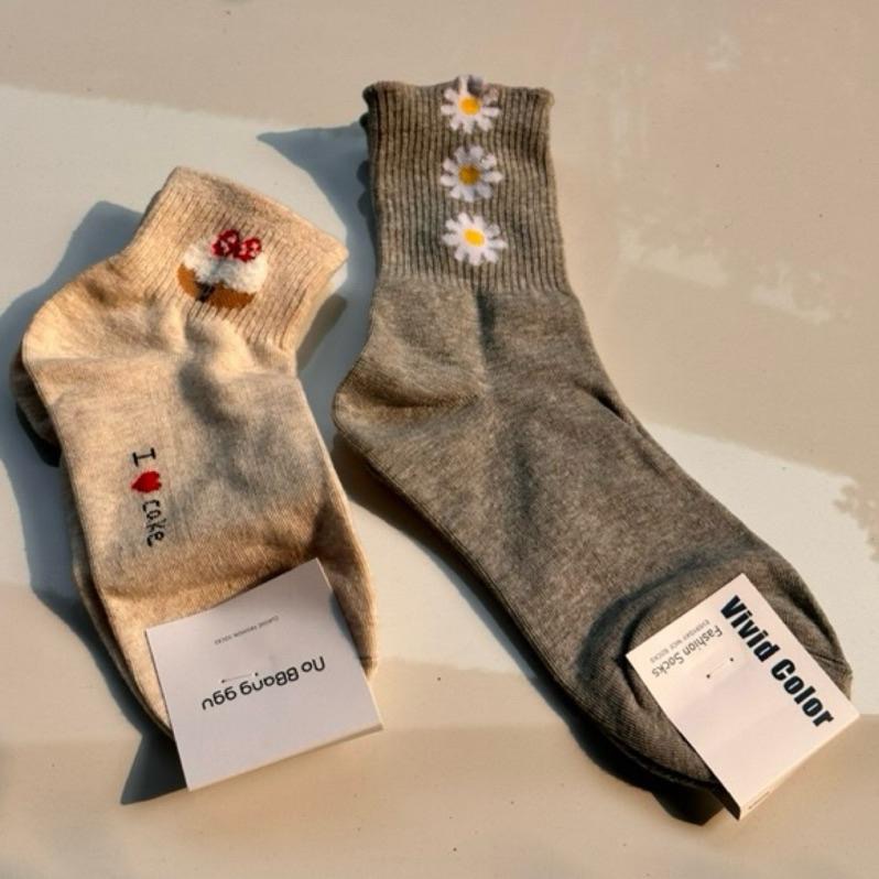 【FHICS】現貨 正韓貨 韓國製花花 雛菊 女襪 四季百搭 蛋糕造型 襪子 短襪 長襪