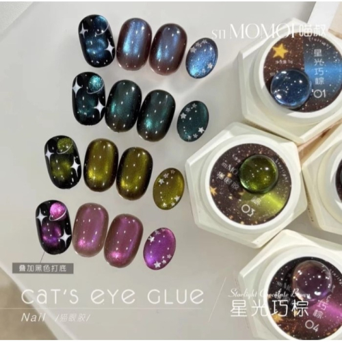 全新喵叔貓眼膠 ~ 星光巧棕,一套4罐 ,買即贈送卡紙、打版珠子、小魔杖雙頭磁鐵,超划算。