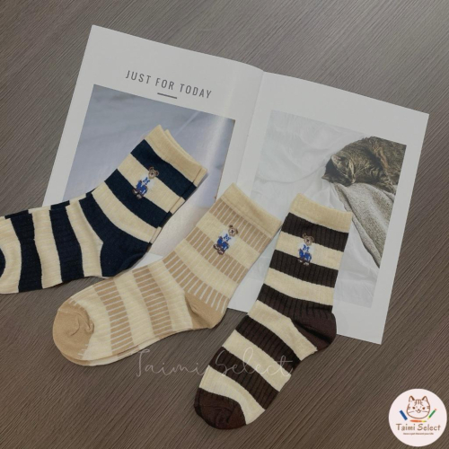 現貨✨條紋小熊長襪子 棉襪 透氣 襪子 女襪 女生襪子 小熊 少女 中筒襪 少女襪 閨蜜 學生襪 條紋 百搭