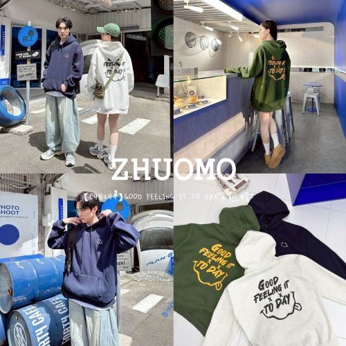 【7天內出貨】GOOD FEELING IT TO DAY笑臉帽T 大學t 厚磅 長袖 印花 衣服 大尺碼 上衣 男裝