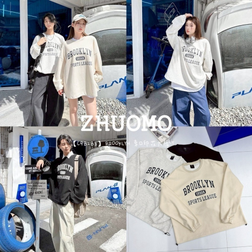 【7天內出貨】正韓 韓系 BROOKLYN束口印花大學T 刺繡 帽T 厚磅 長袖 印花 衣服 大尺碼 上衣 男裝
