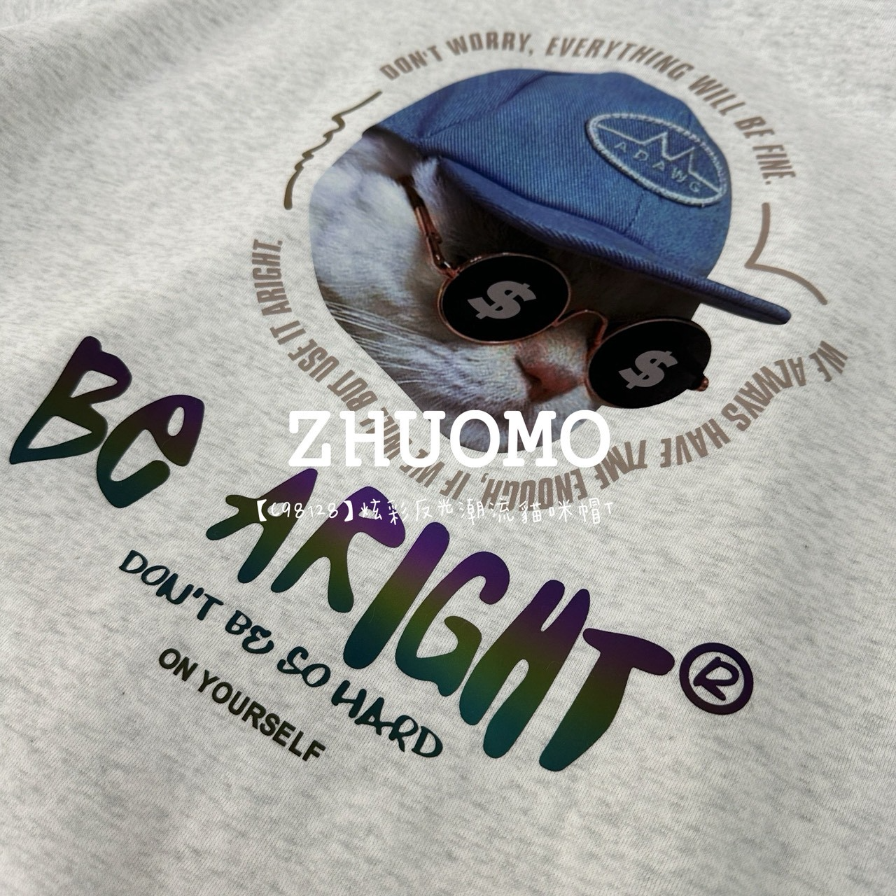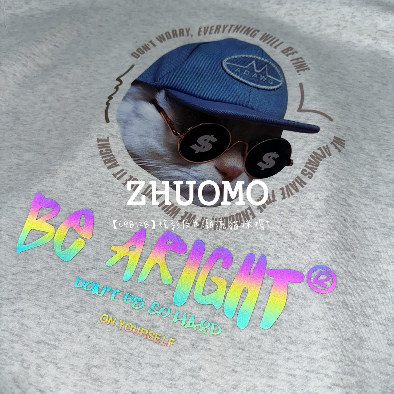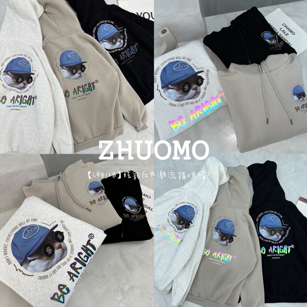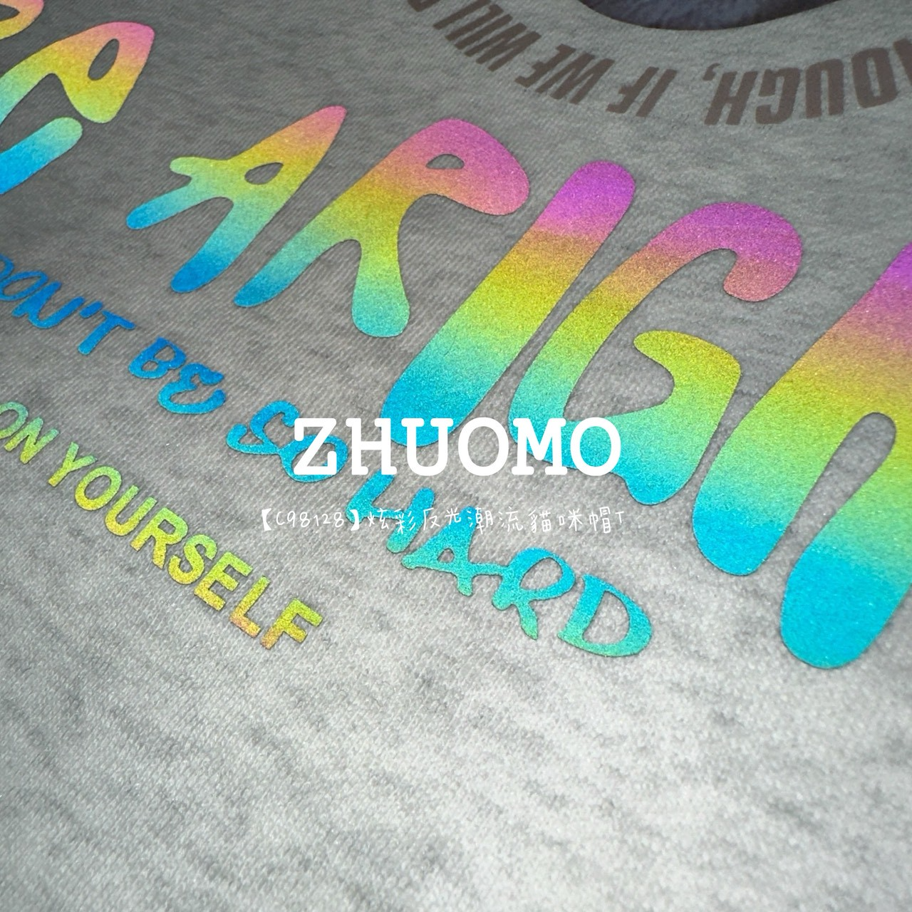 【C98128】炫彩反光潮流貓咪帽T