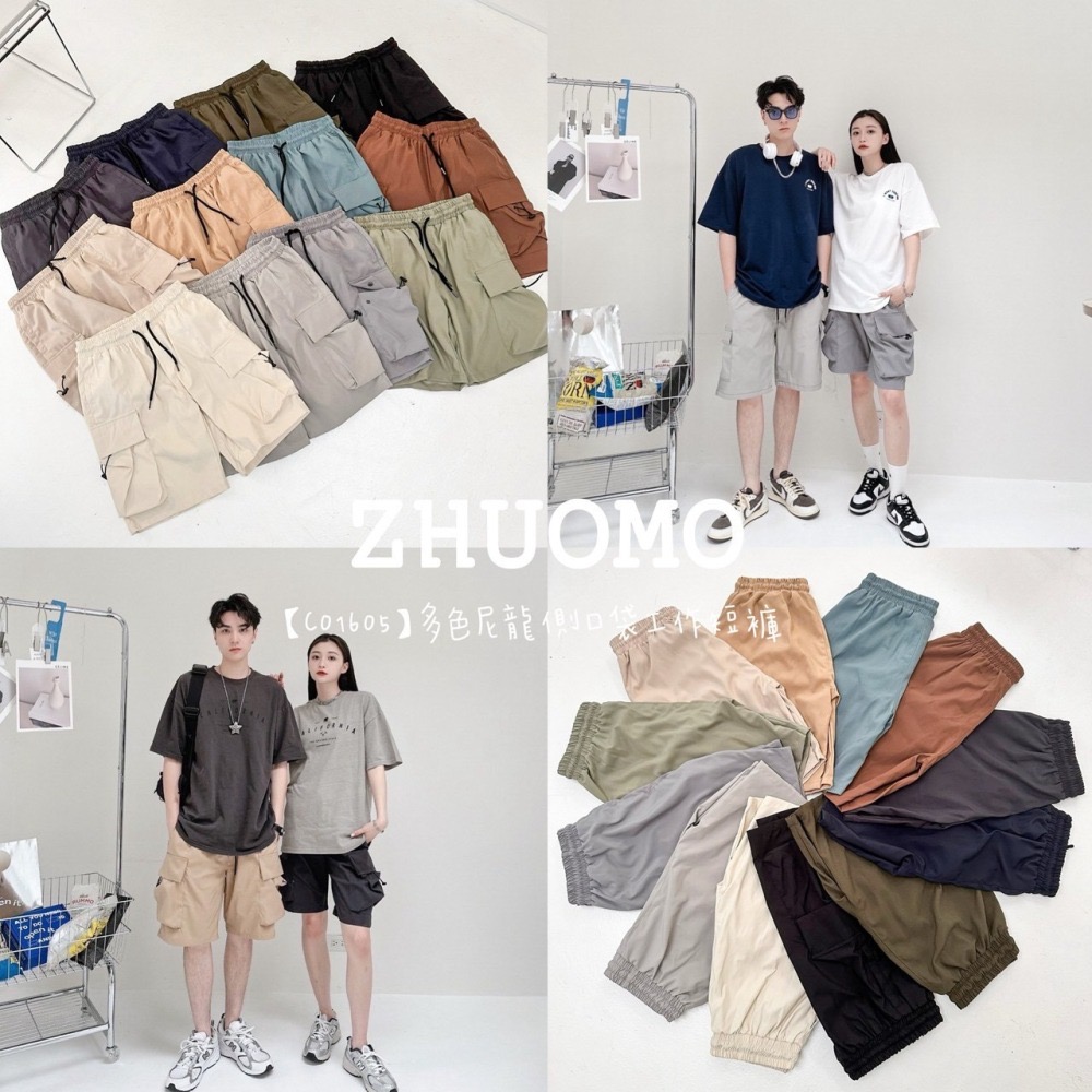 【C01605】多色尼龍側口袋工作短褲