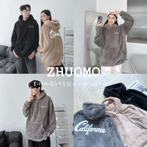 【C80486】反光草寫CALIFORNIA絨毛帽T