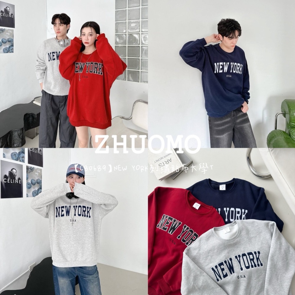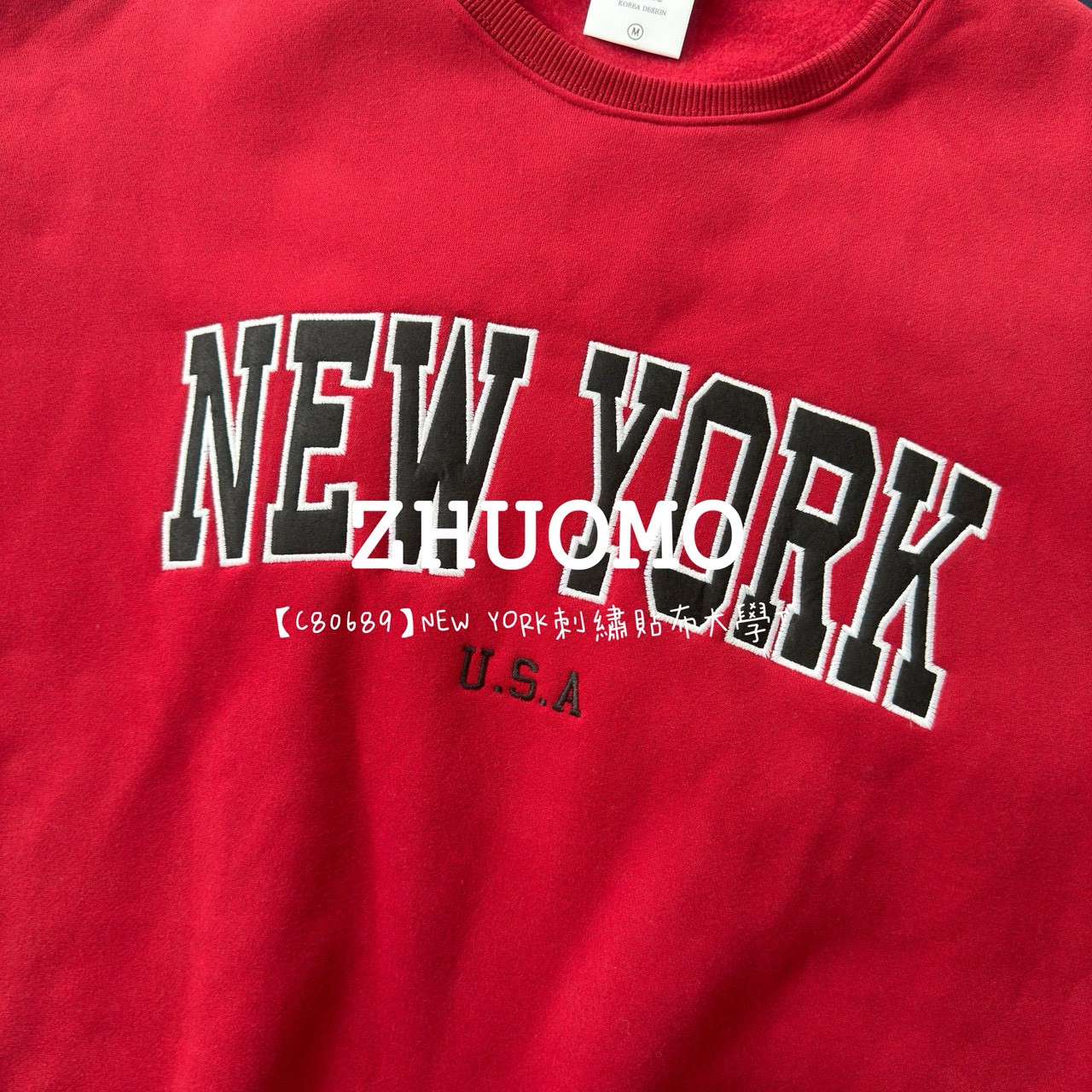 【C80689】NEW YORK刺繡貼布大學T