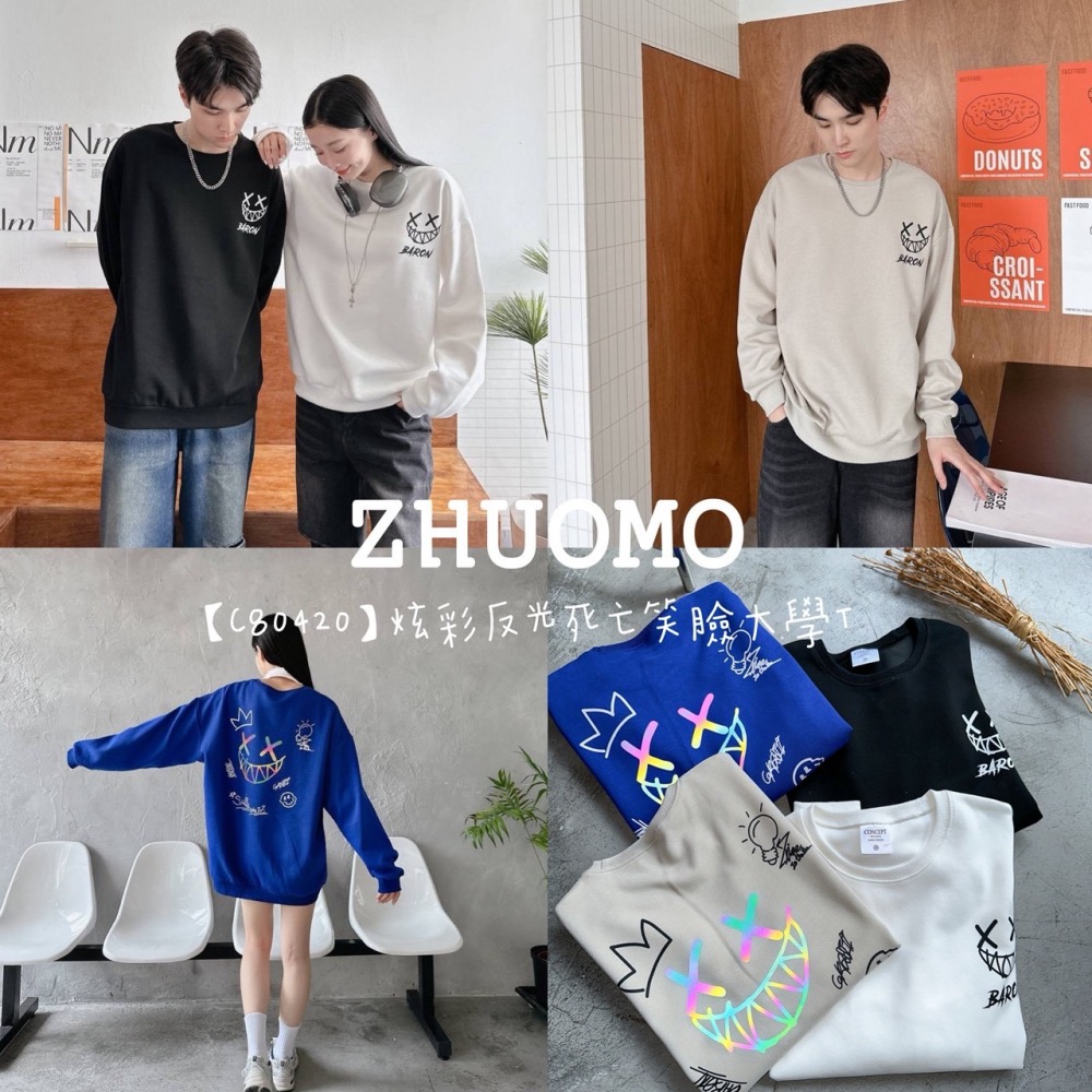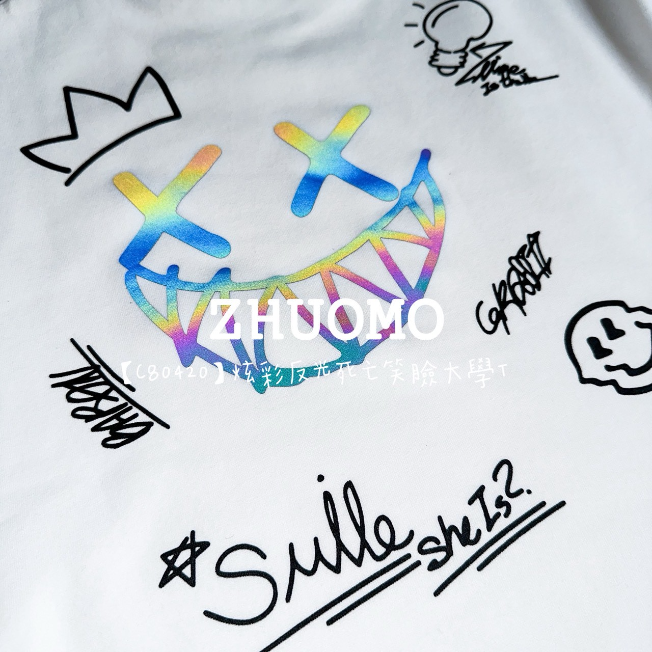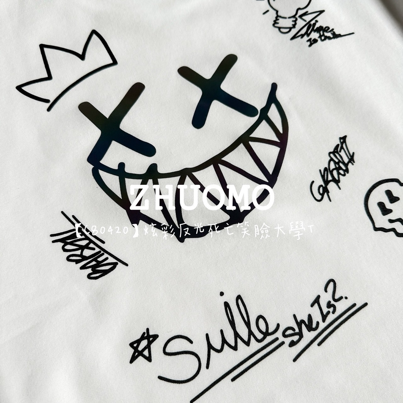 【C80420】炫彩反光死亡笑臉大學T