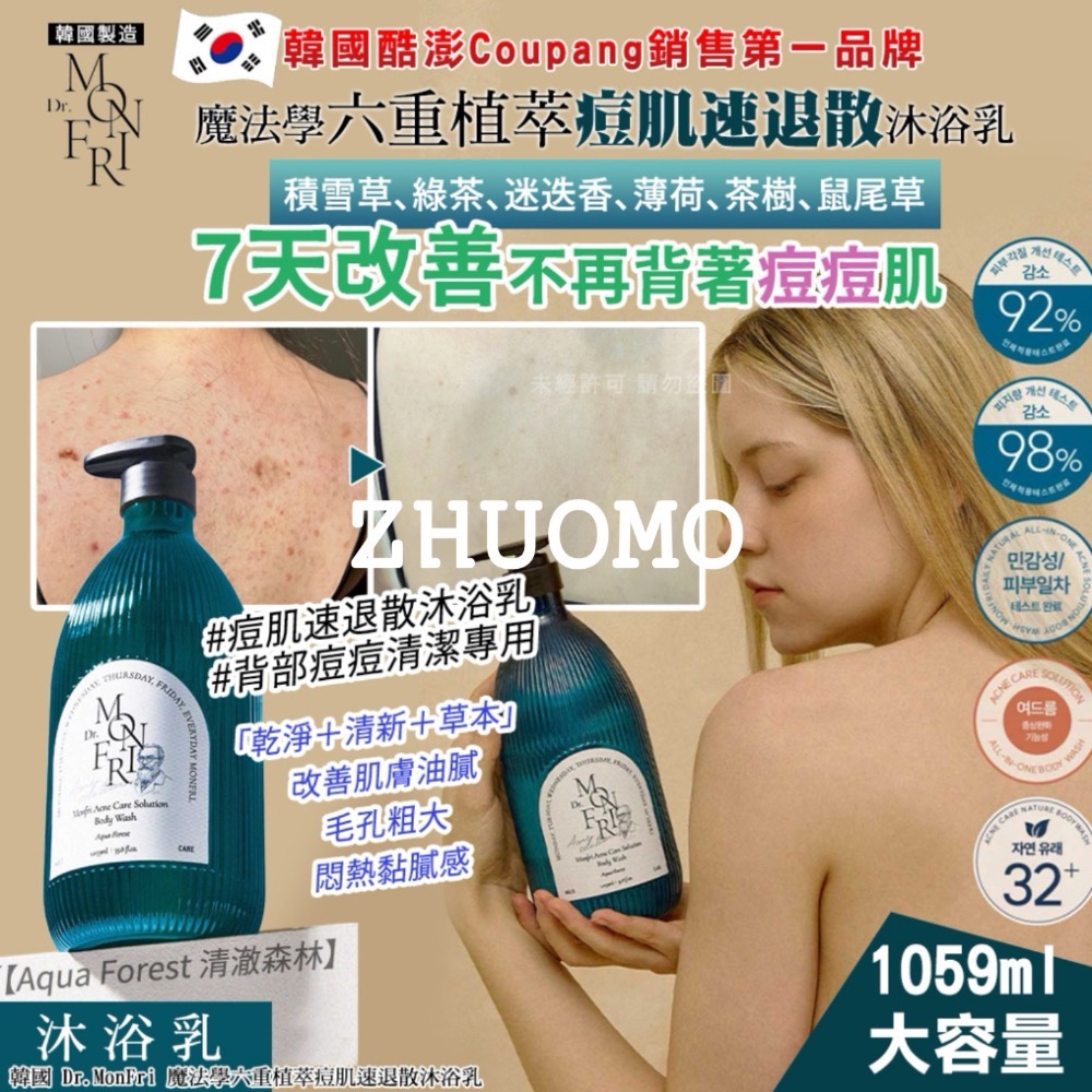 【長期開團中】韓國 Dr.MonFri 魔法學六重植萃痘肌速退散沐浴乳 1059ml