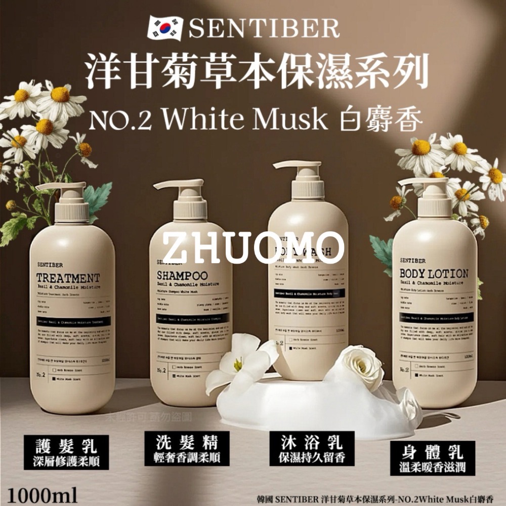 【長期開團中】韓國 SENTIBER 洋甘菊草本保濕系列1000ml-NO.2White Musk白麝香