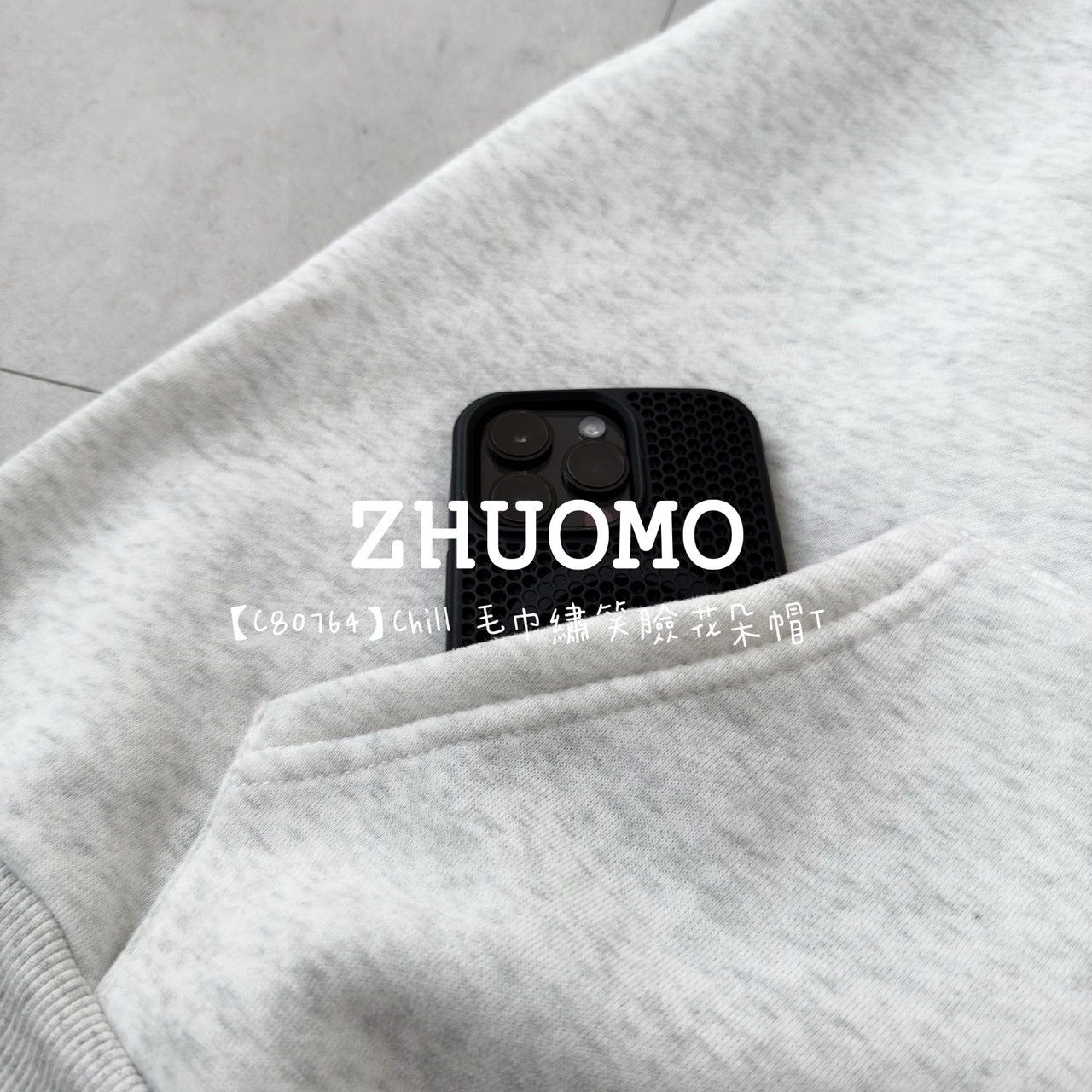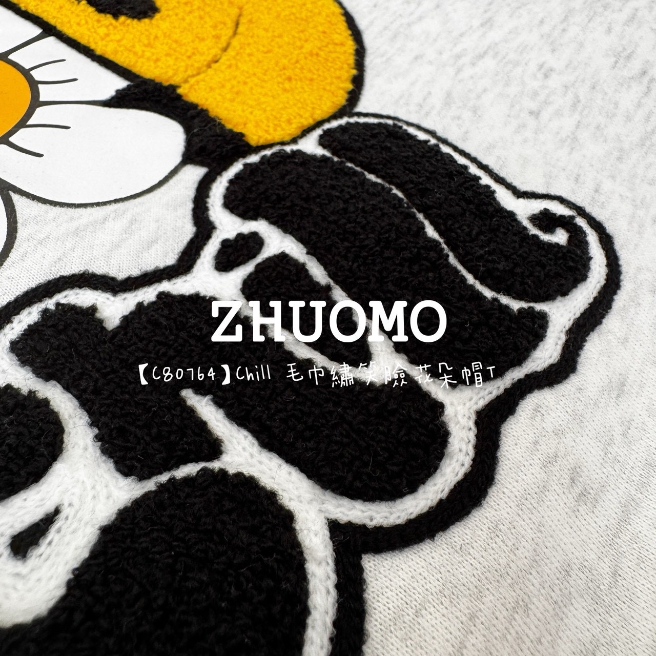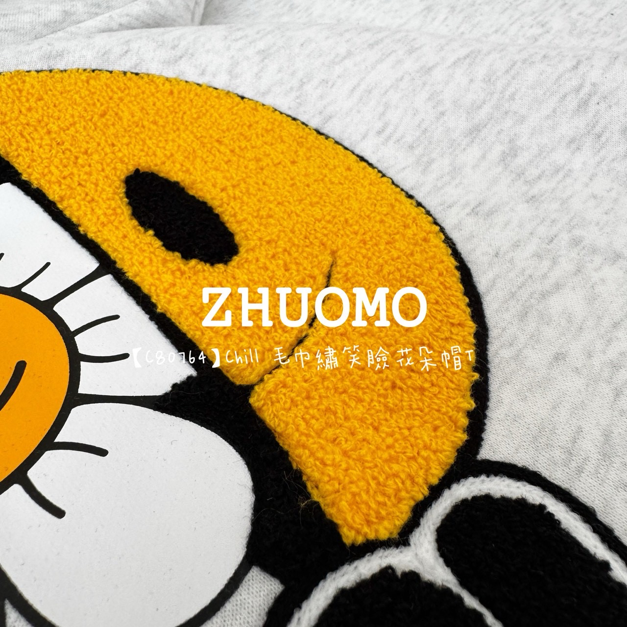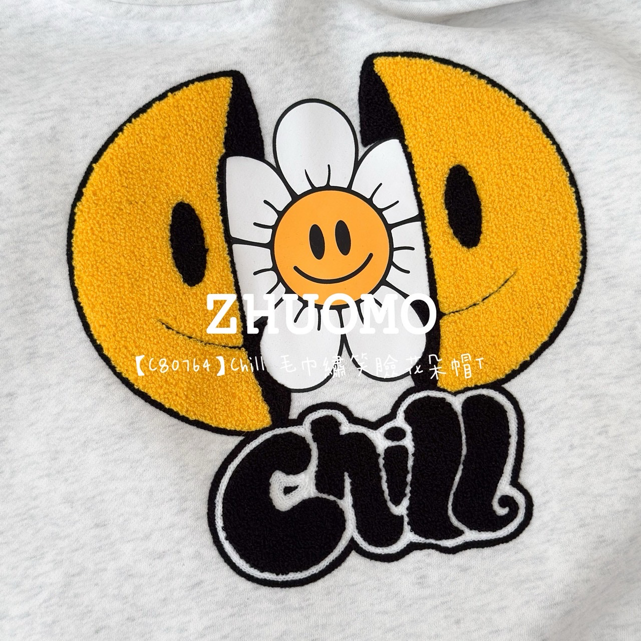 【C80764】Chill 毛巾繡笑臉花朵帽T