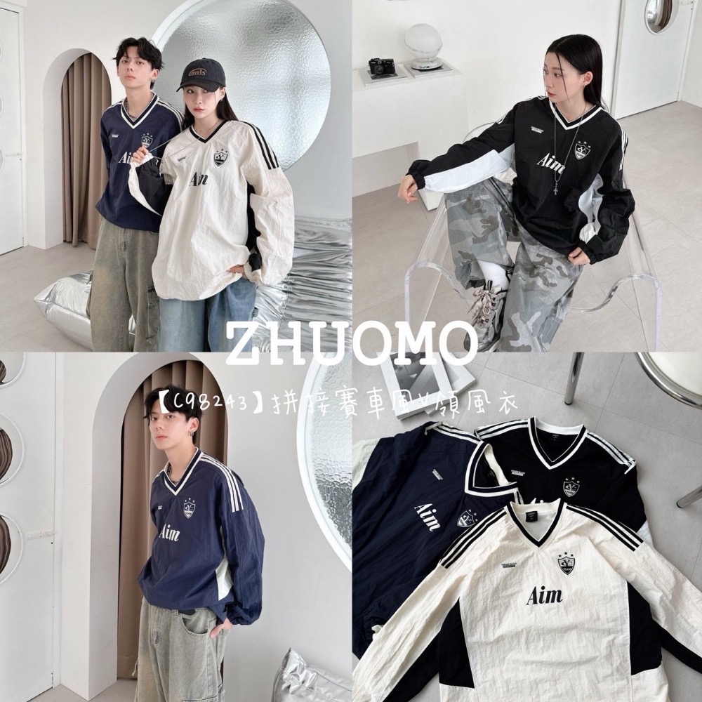 【C98243】拼接賽車風V領風衣