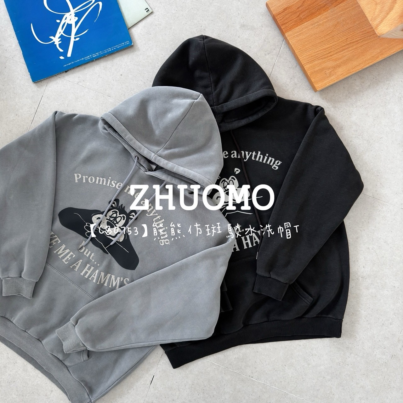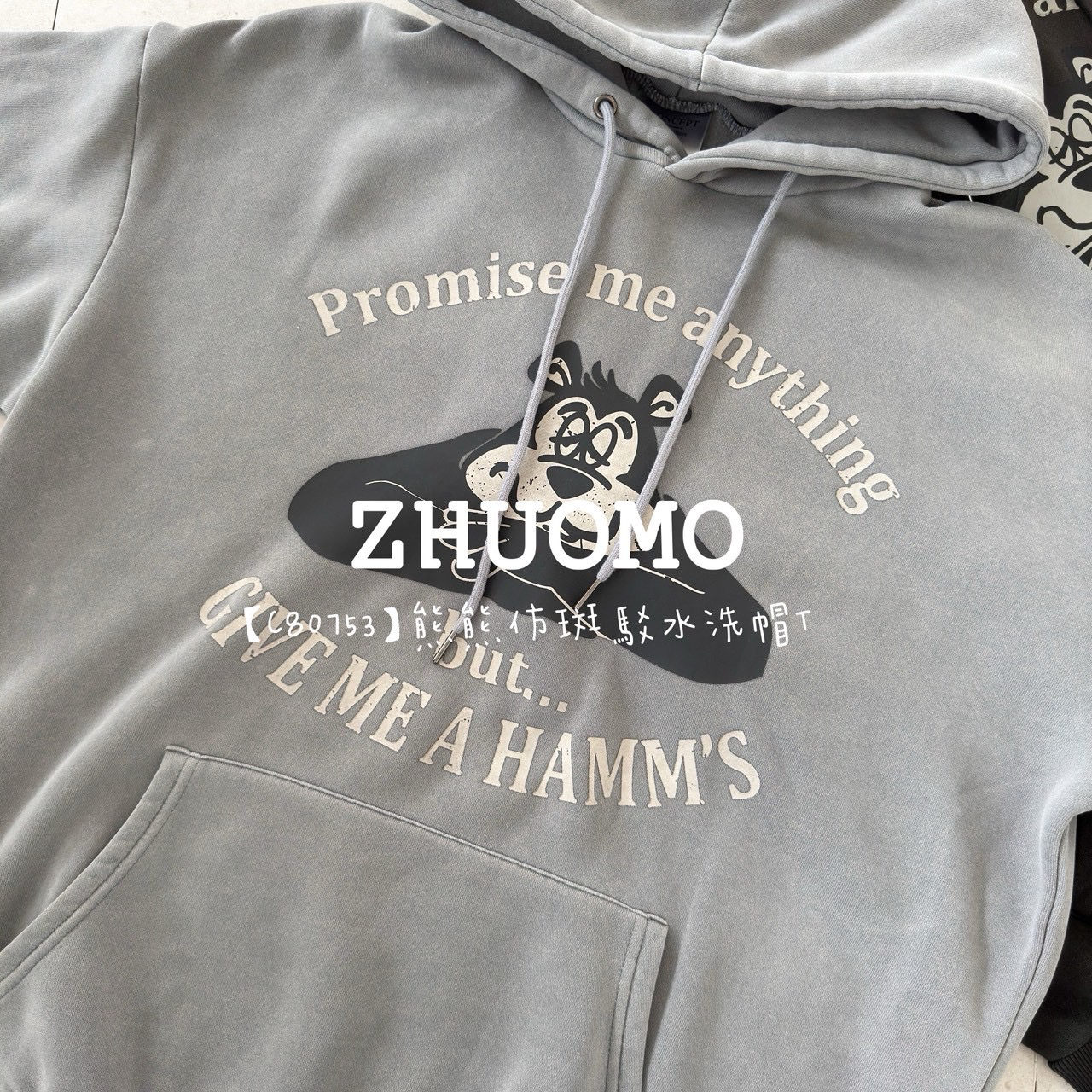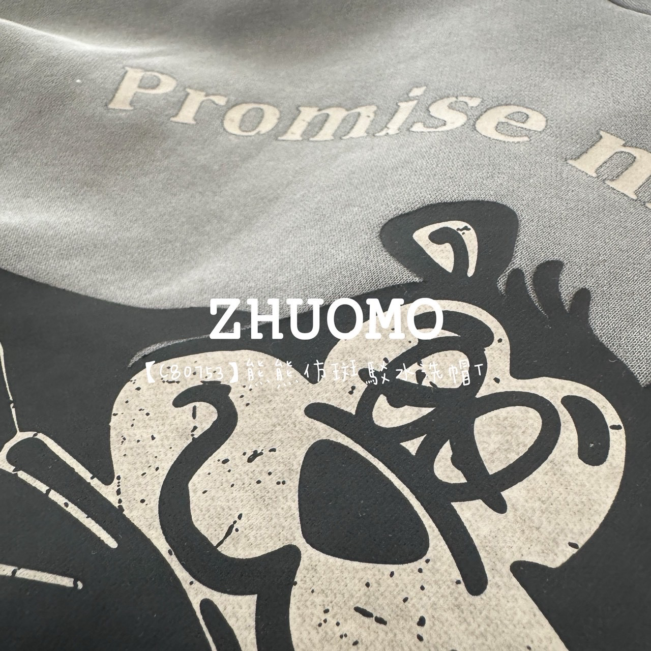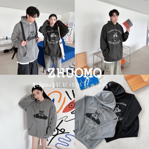 【C80753】熊熊仿斑駁水洗帽T