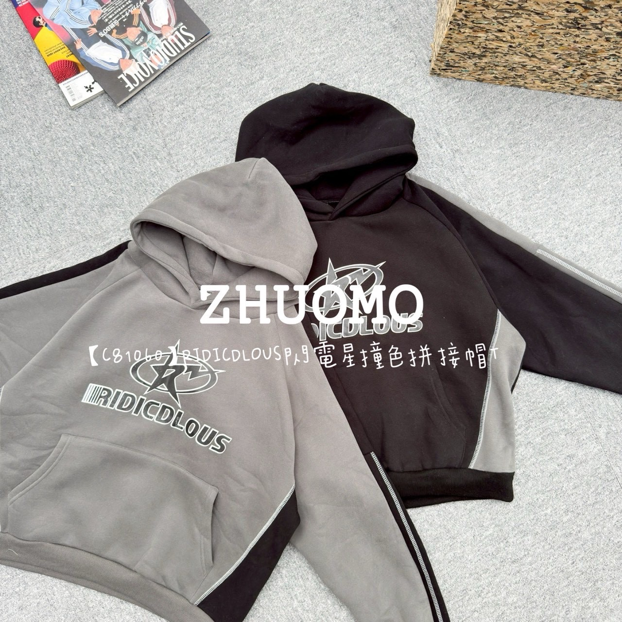 【C81060】RIDICDLOUS閃電星撞色拼接帽T