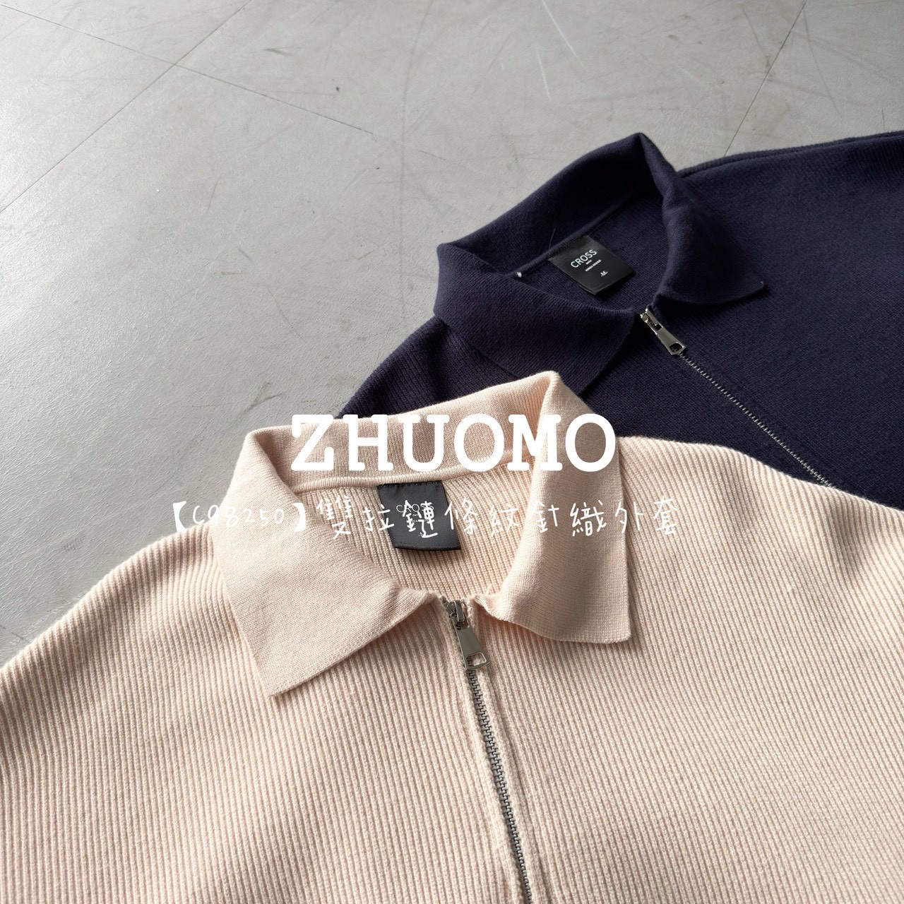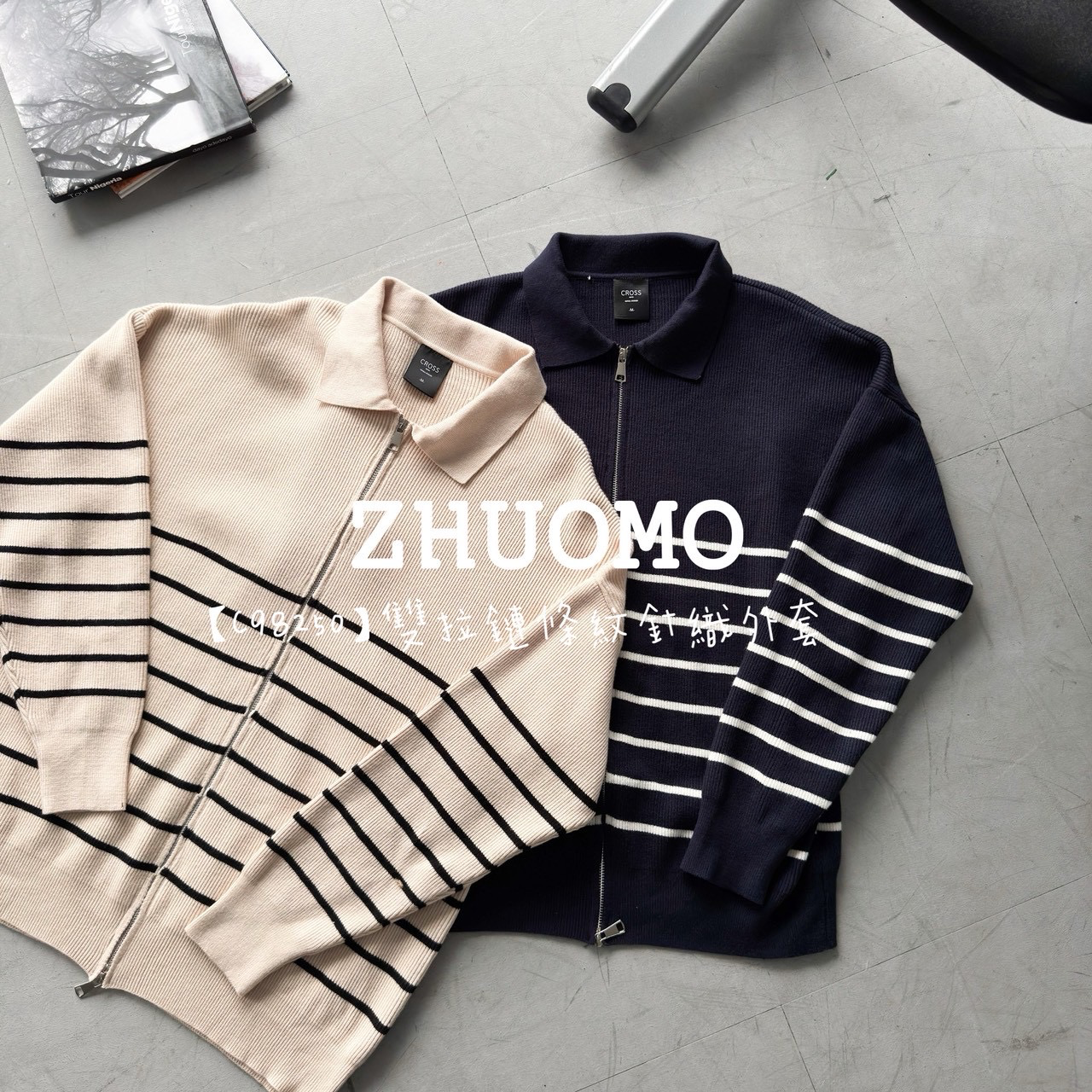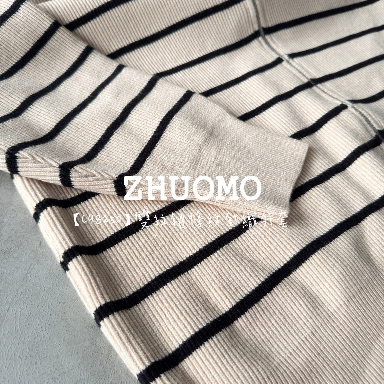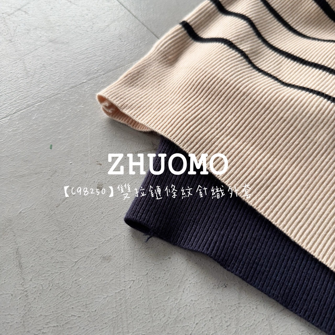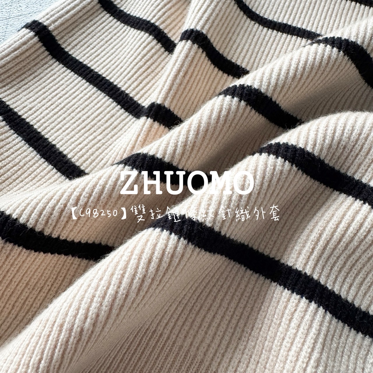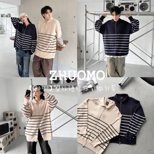 【C98250】雙拉鏈條紋針織外套