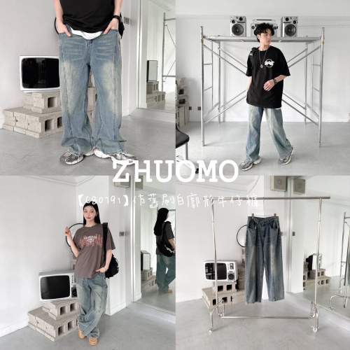 【C80791】仿舊刷白廓形牛仔褲