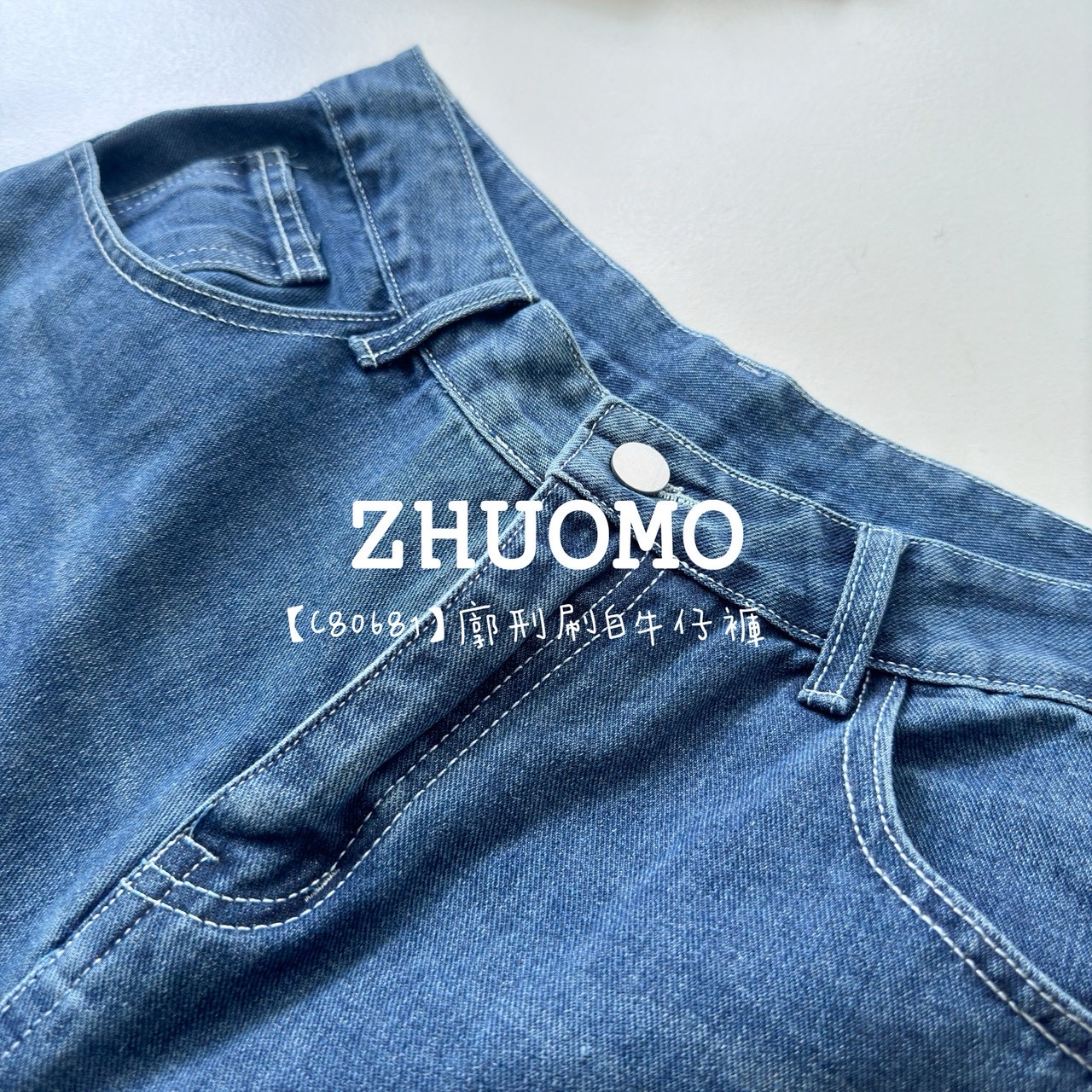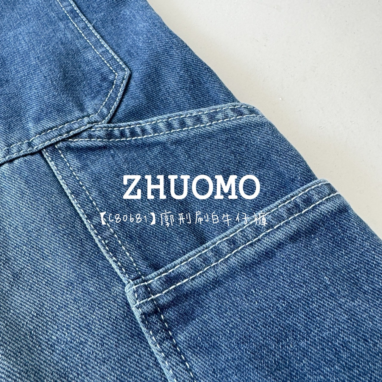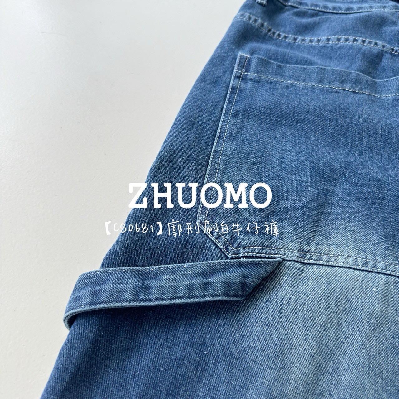 【C80681】廓刑刷白牛仔褲