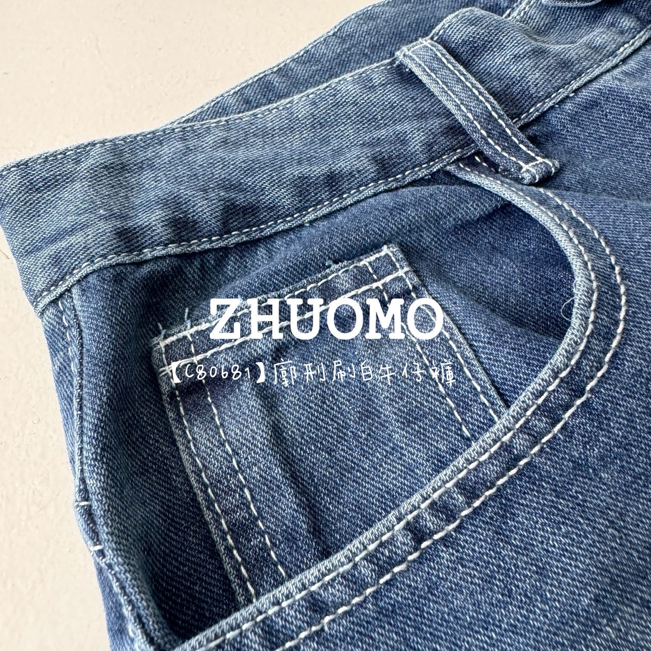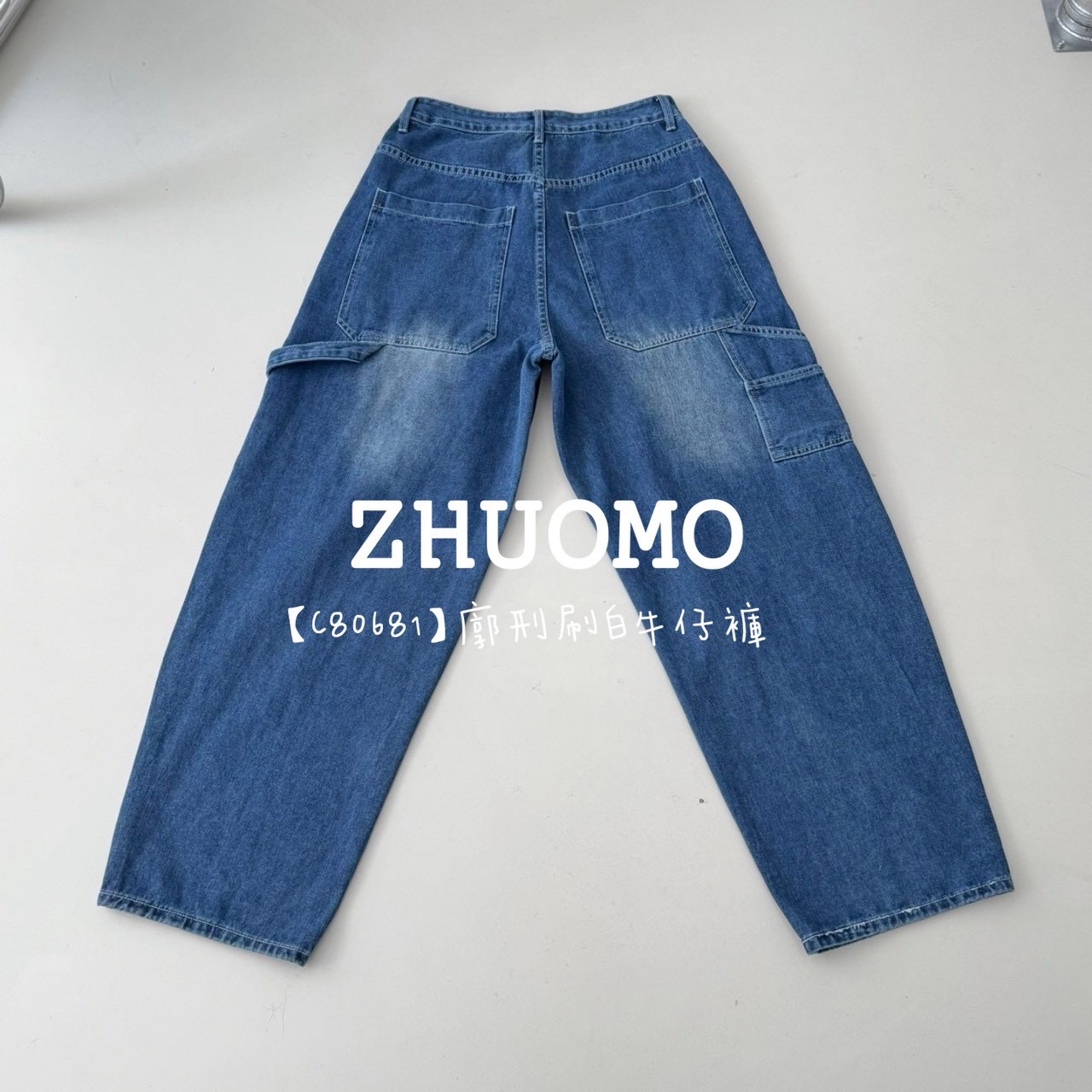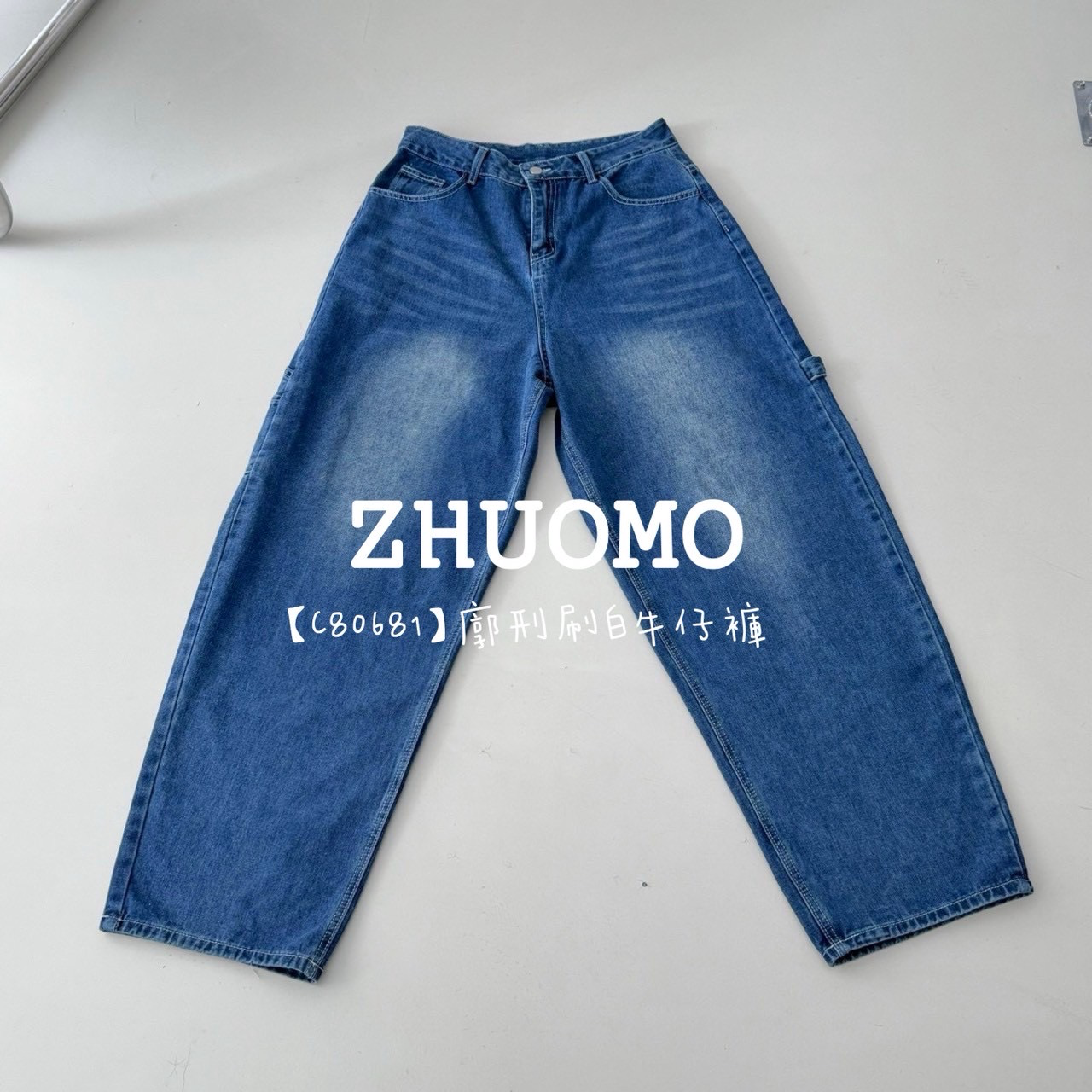 【C80681】廓刑刷白牛仔褲