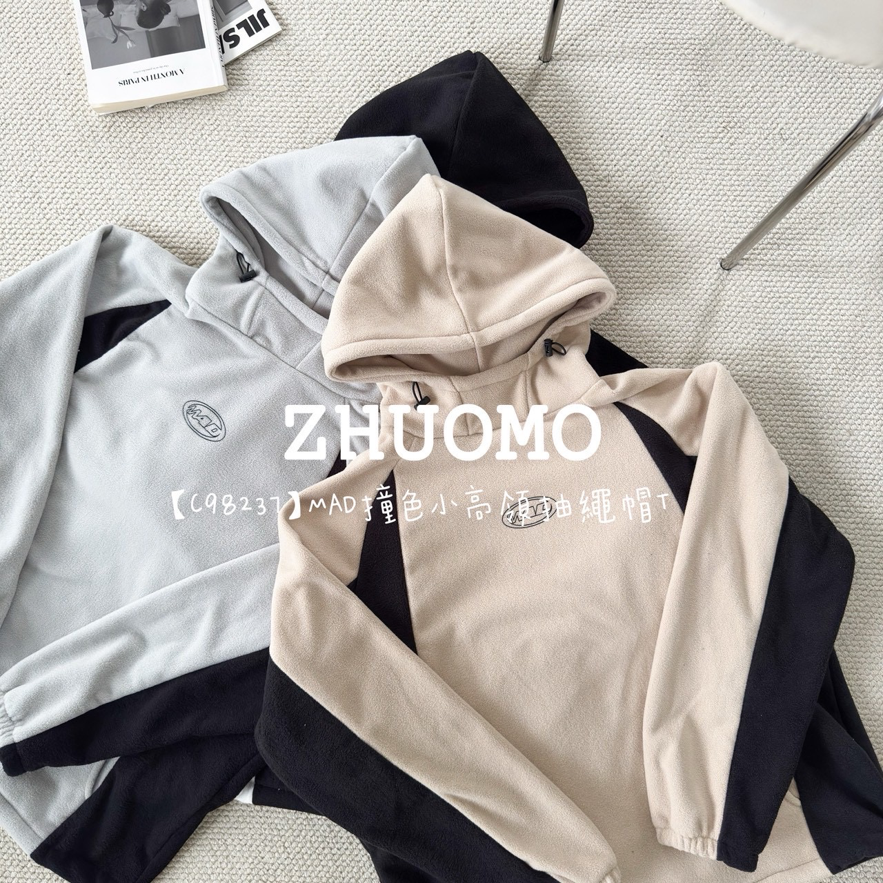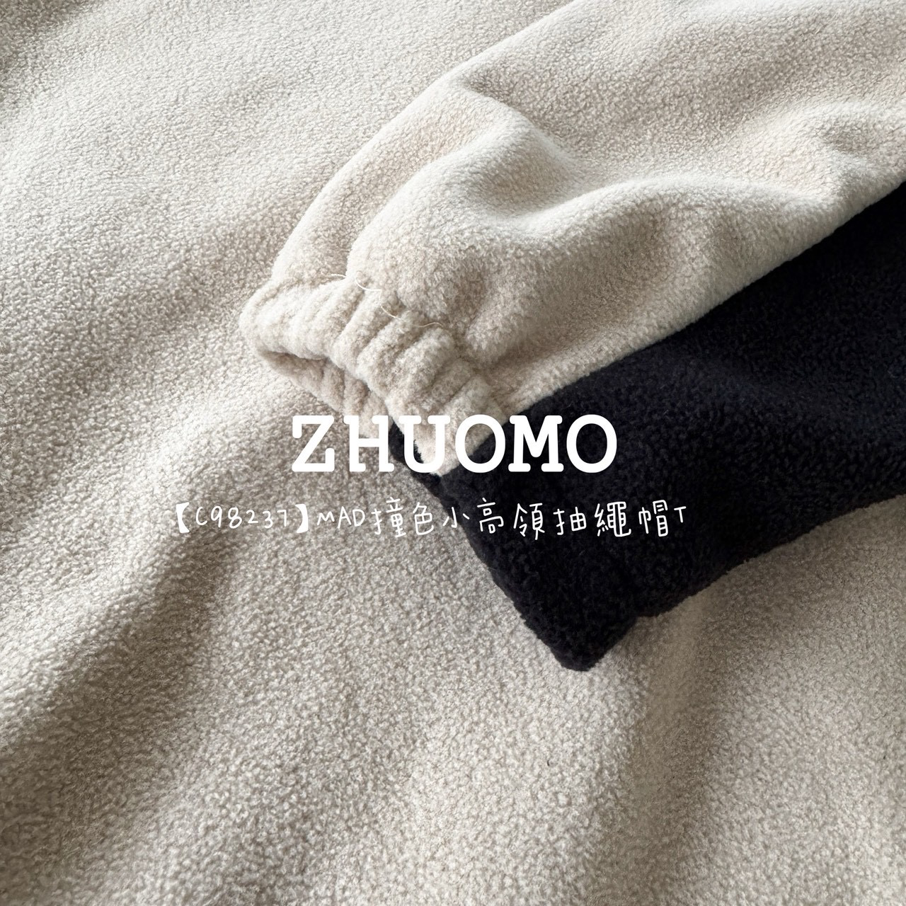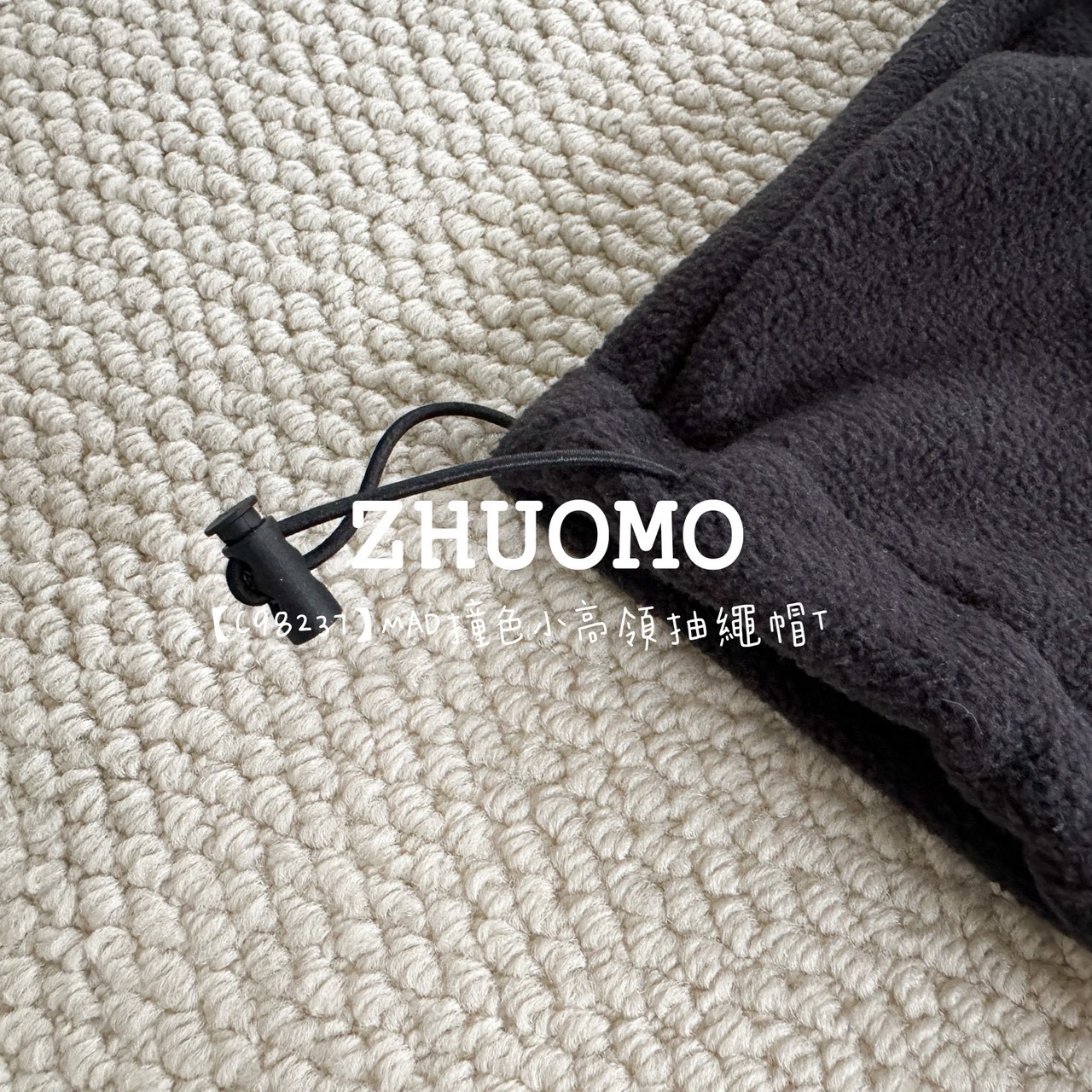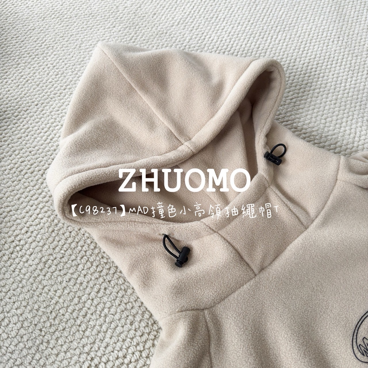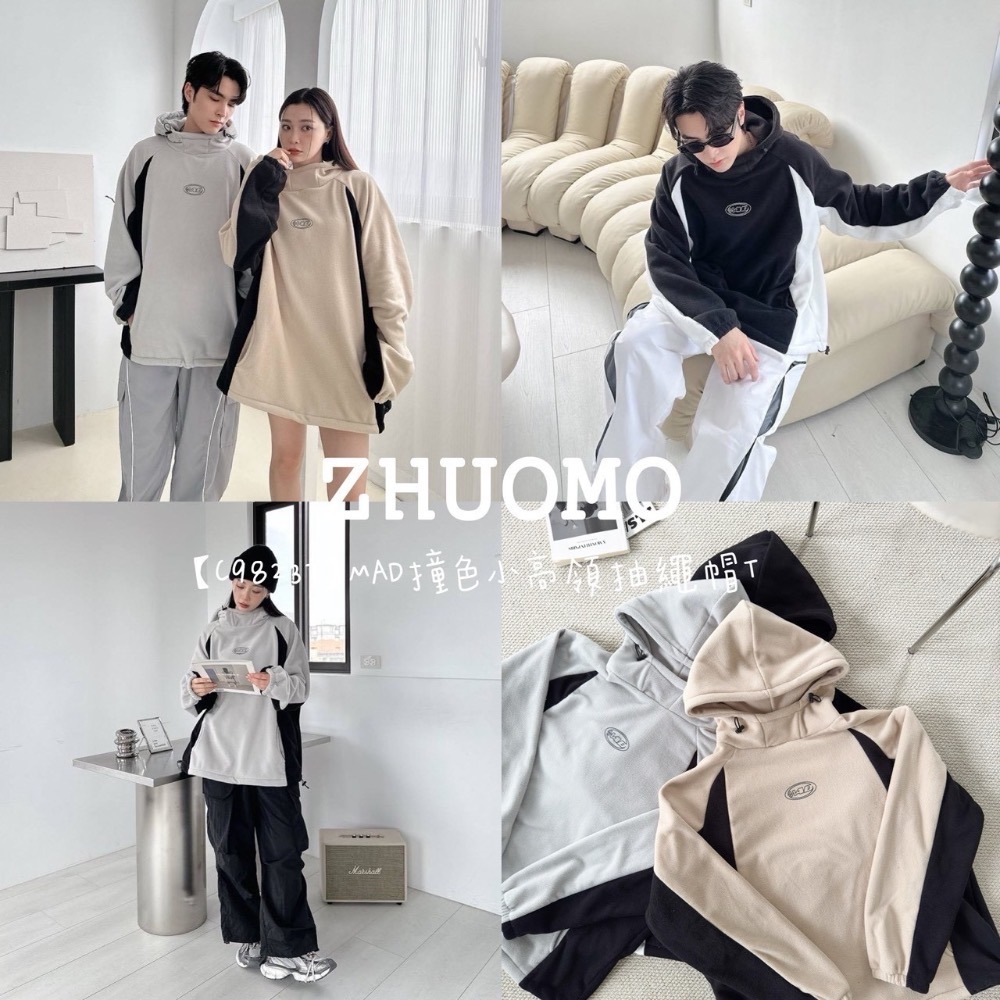 【C98237】MAD撞色小高領抽繩帽T