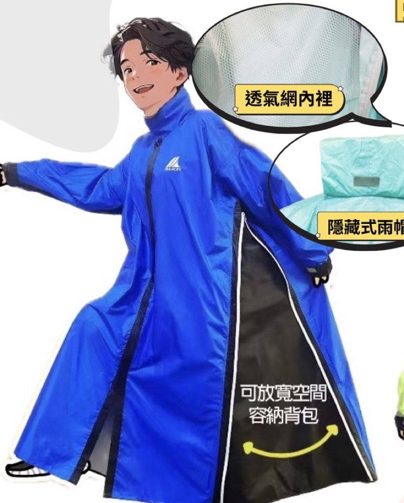 沒有舊式雨衣的厚重感,這款不僅讓你在車廂內可以更好的收納,舒適內裡也可以避免雨衣黏在身上的感覺