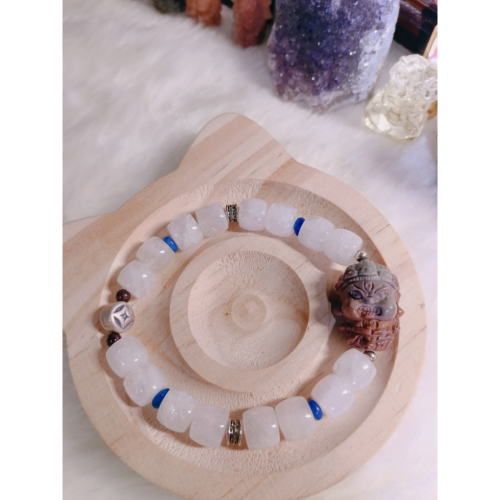 搭配 青金石、白幽水晶 與 銀飾點綴,