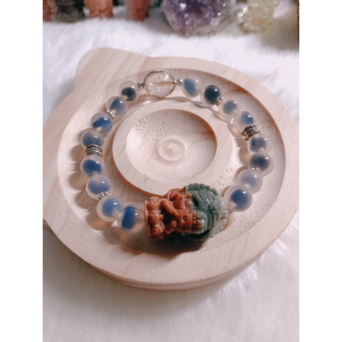 搭配 藍糖心瑪瑙 與 白水晶轉轉,