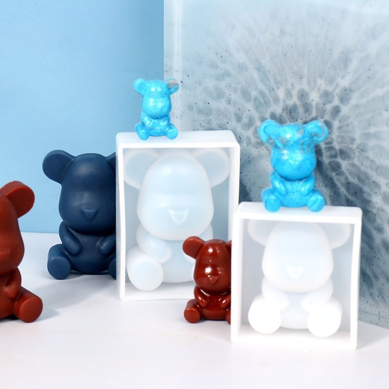 立體坐立熊鏡面矽膠模具 小熊 DIY手工模具 吊墜擺台飾品 水晶滴膠模具