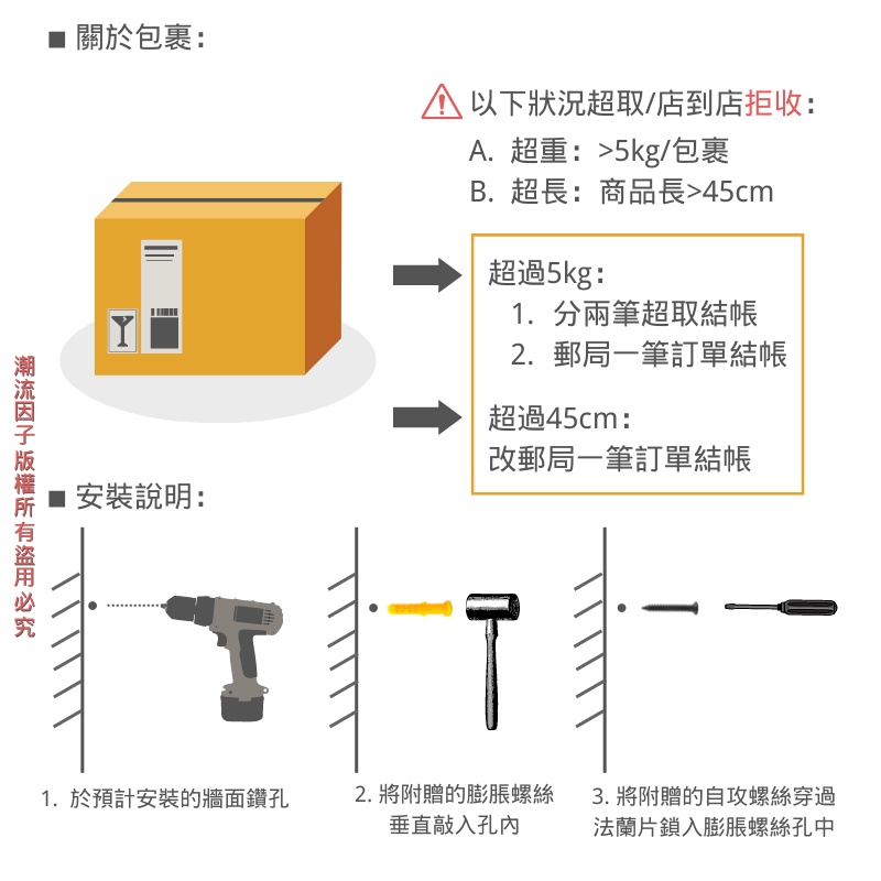 👉購買多樣商品請注意:超取限重10kg,最長邊45cm內,超過選賣家宅配(郵局)