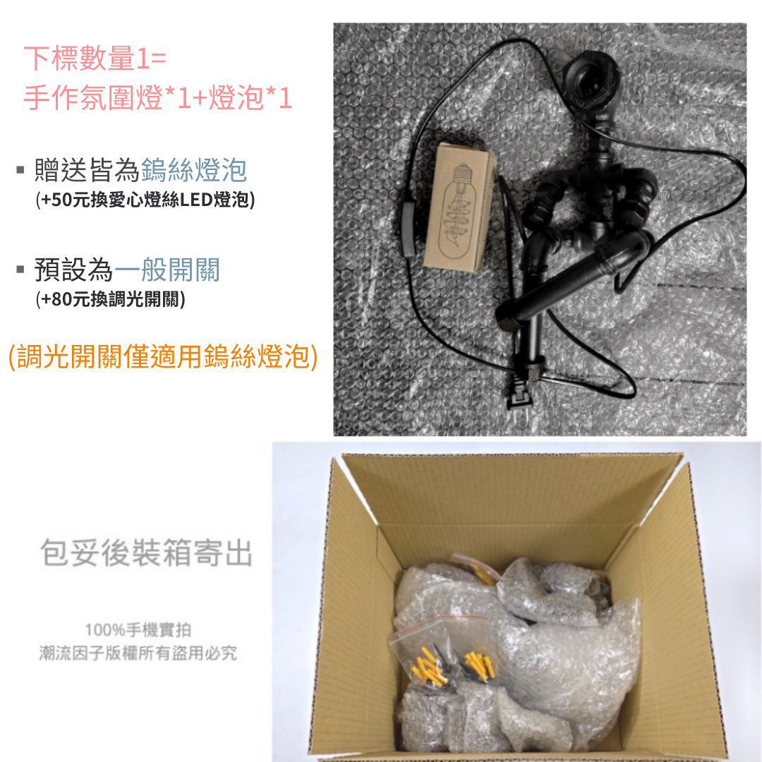 📣台灣現貨24H內出🎊手工鐵管裝飾燈loft工業鐵管造型燈工業復古床頭氛圍燈吧檯酒吧擺飾燈手工藝術燈水管造型燈生日禮物