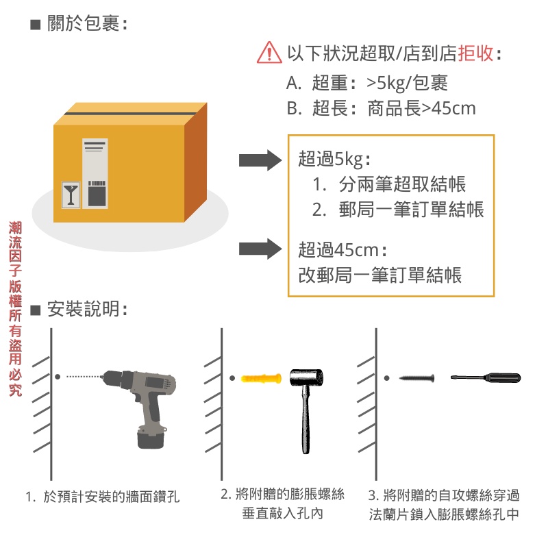 👉購買多樣商品請注意:超取限重10kg,最長邊45cm內,超過選賣家宅配(郵局)