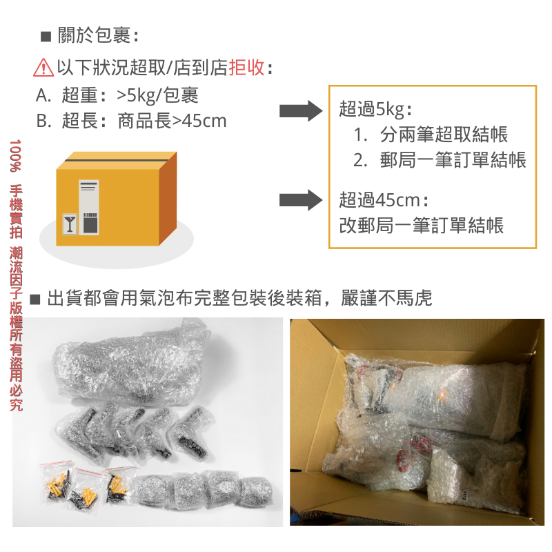👉購買多樣商品請注意:超取限重5kg,最長邊45cm內,不然超商會拒收