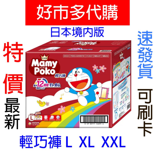 特價【Costco好市多代購】滿意寶寶 哆啦A夢輕巧褲 日本境內版 L號 XL號 XXL號 防漏側邊 透氣 舒適 最新效