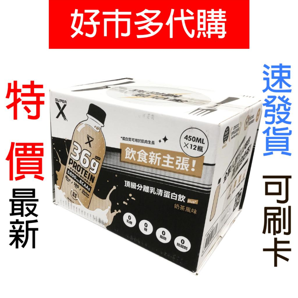 特價【Costco好市多代購】Super X 頂級分離乳清蛋白飲 Plus 奶茶風味 450ml 12入 最新效期