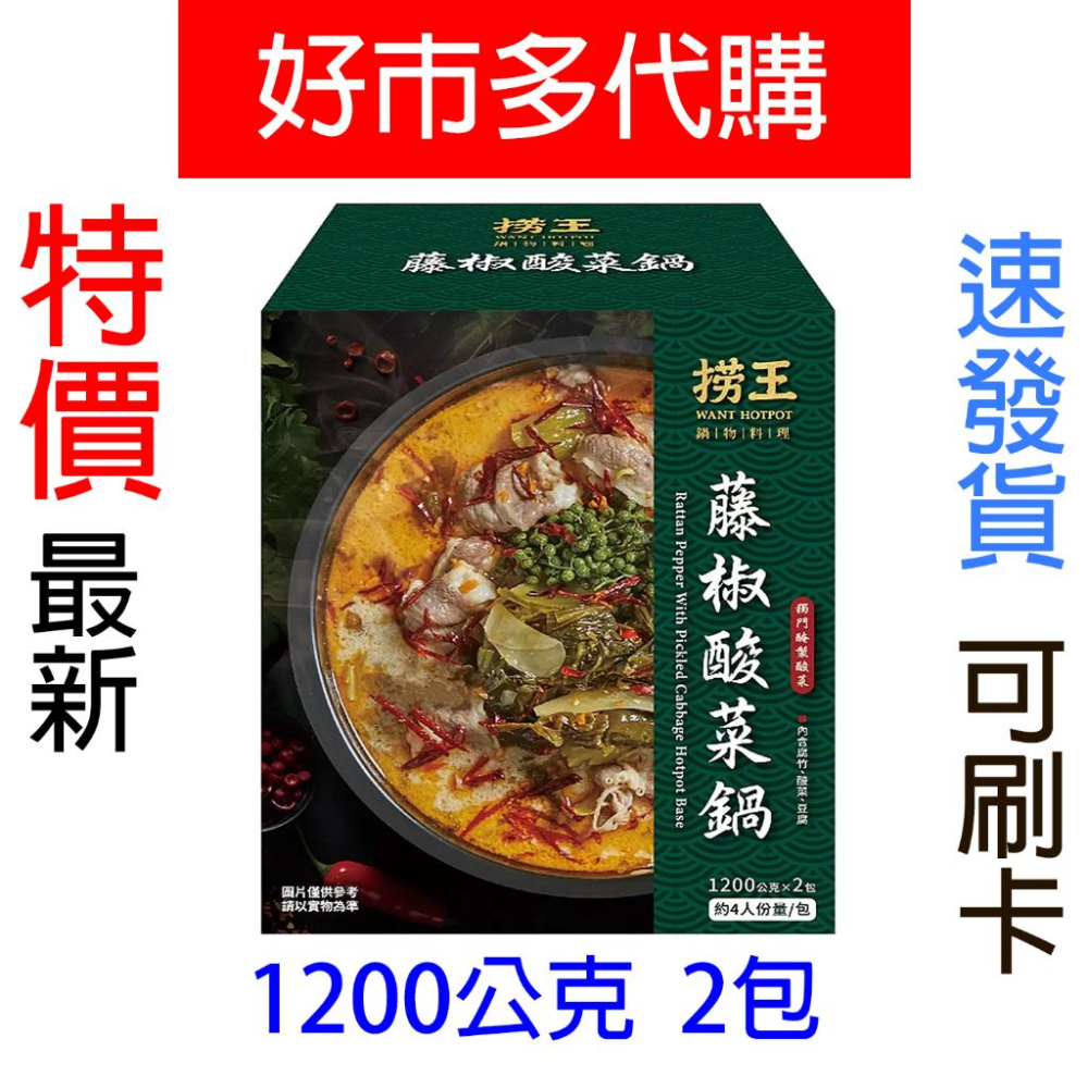 特價【Costco好市多代購】撈王 藤椒酸菜鍋湯底 1200公克 2包 獨門醃製酸菜 風味獨特 各式鍋物 最新效期