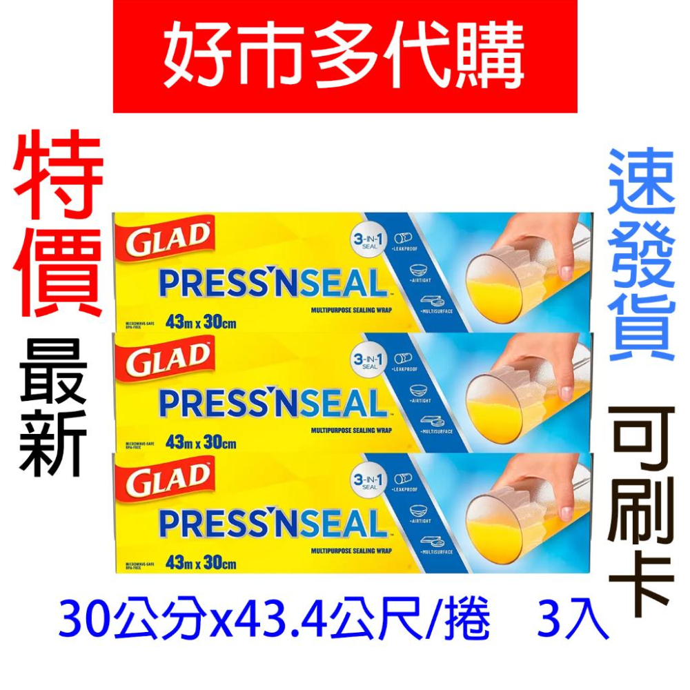 特價【Costco好市多代購】Glad Press’n Seal 強力保鮮膜 3入 每捲30公分x43.4公尺 最新效期