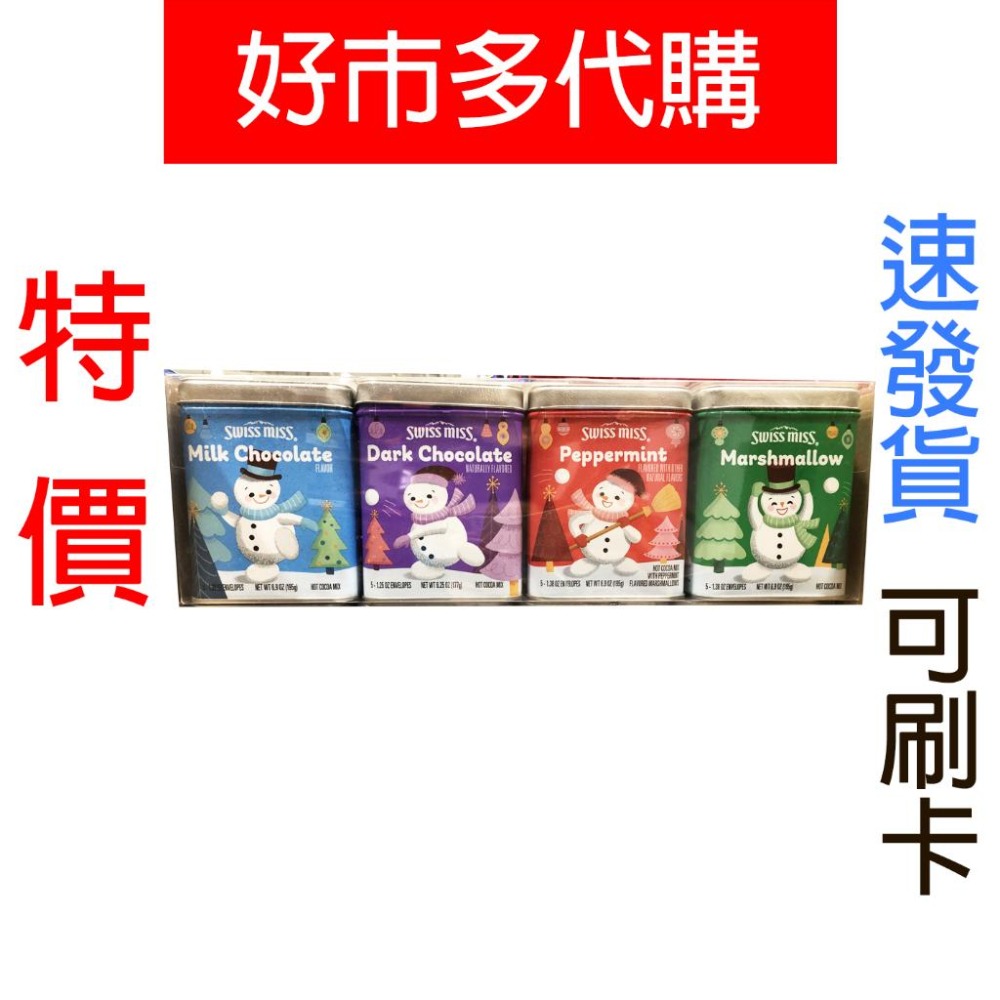 特價【Costco好市多代購】Swiss Miss 可可粉禮盒四入組 牛奶巧克力 棉花糖 薄荷 黑巧克力 節慶限定版