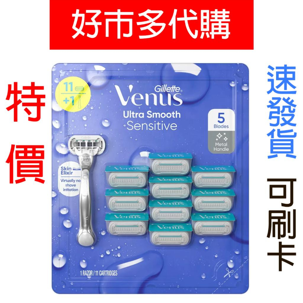 特價【Costco好市多代購】Venus系列 女性除毛刀 刀架 X 1 + 刀片 X 11 俐落乾淨 微梳設計
