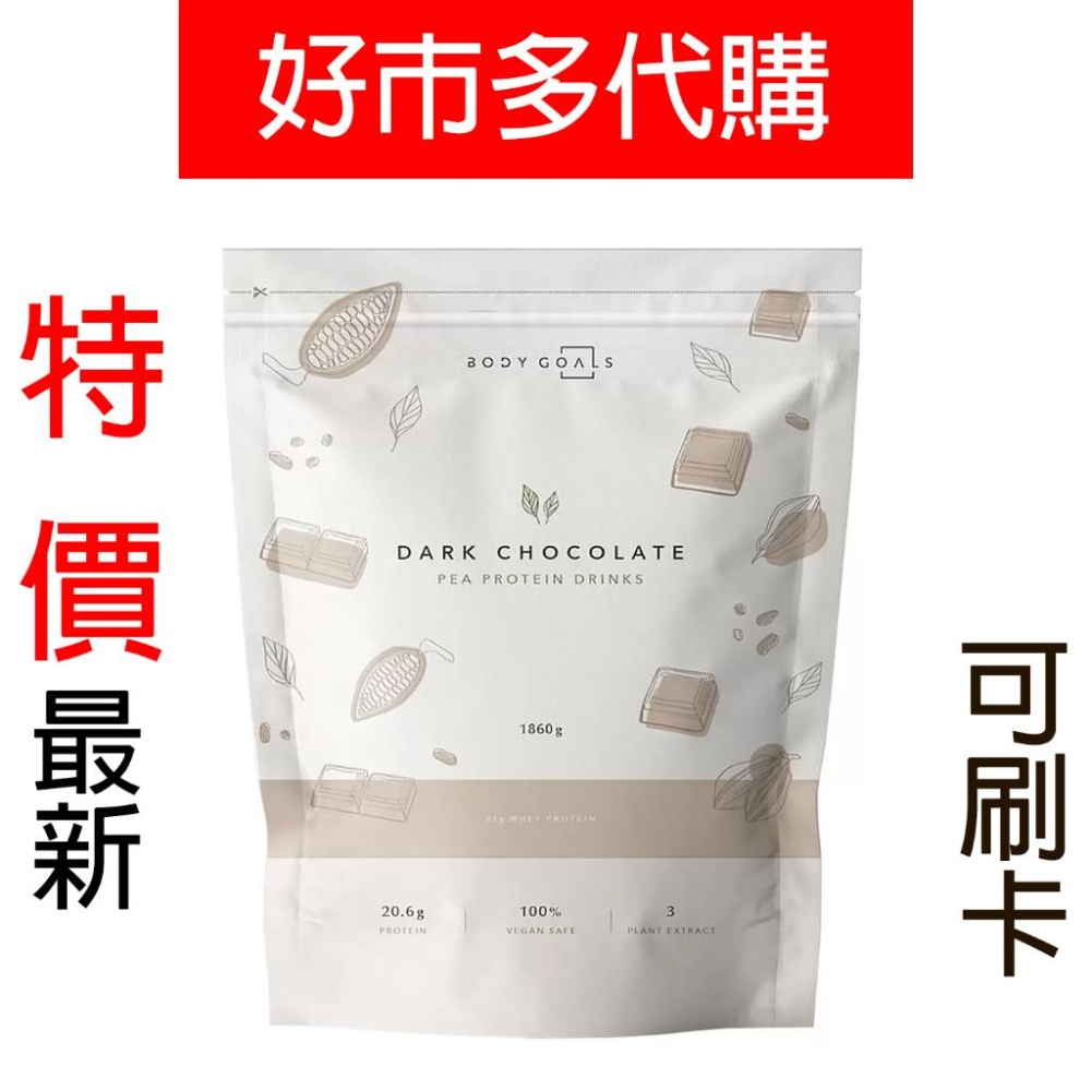 特價【Costco好市多代購】Body Goals 全素多效豌豆蛋白飲 醇黑可可口味 1.86公斤 胺基酸 最新效期