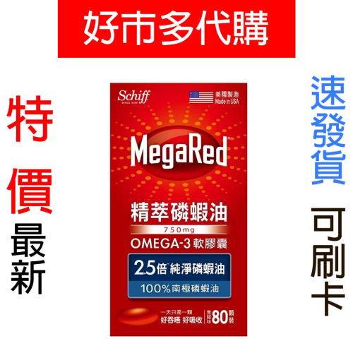 特價【Costco好市多代購】Schiff MegaRed 精萃磷蝦油Omega-3軟膠囊(食品) 80粒 最新效期