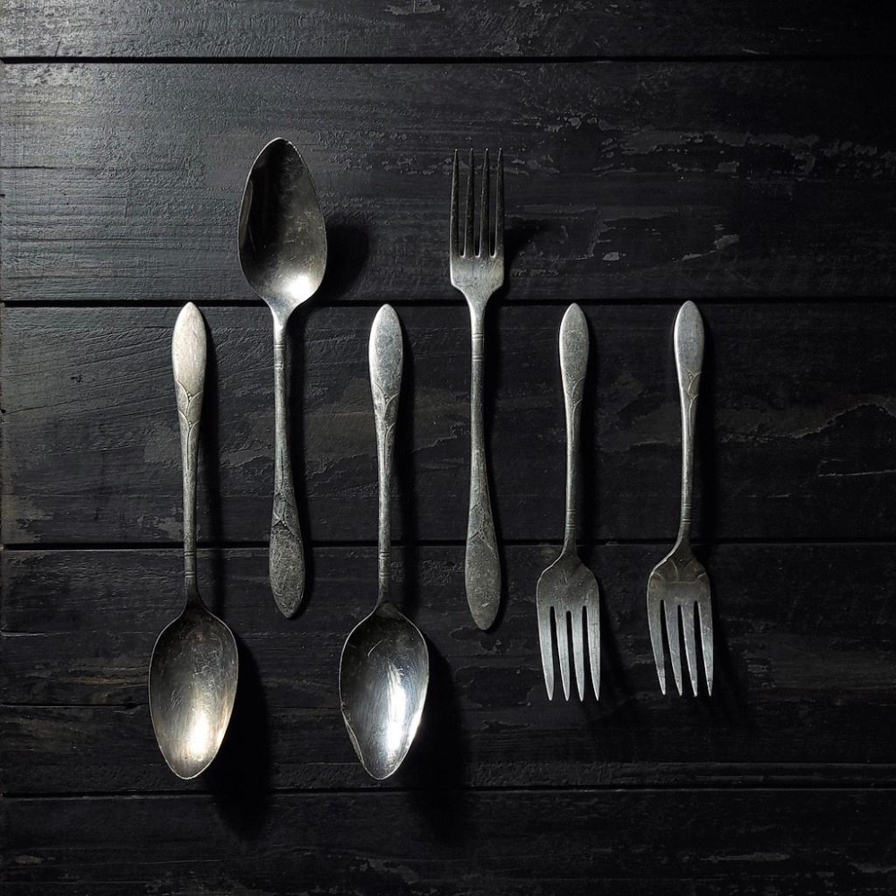 【台灣現貨】歐式復古鍍銀叉匙六件組-Vintage舊物中古老件二手銀器拍照道具鍍銀叉子鍍銀湯匙西洋餐具 | 伯爵古器