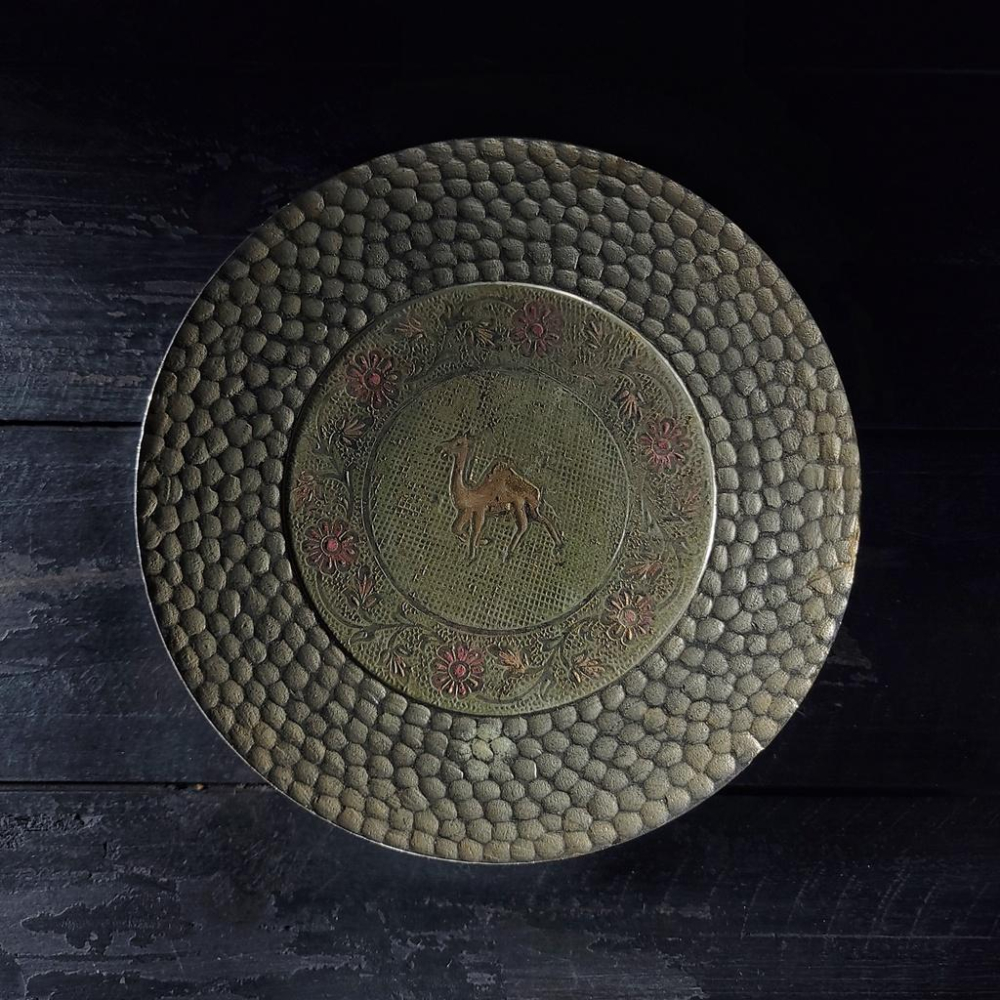【台灣現貨】歐式捶紋黃銅圓盤Vintage舊物中古老件二手銅器拍照道具黃銅盤托盤茶盤黃銅盤餐盤靜物擺件 | 伯爵古器