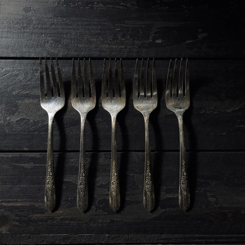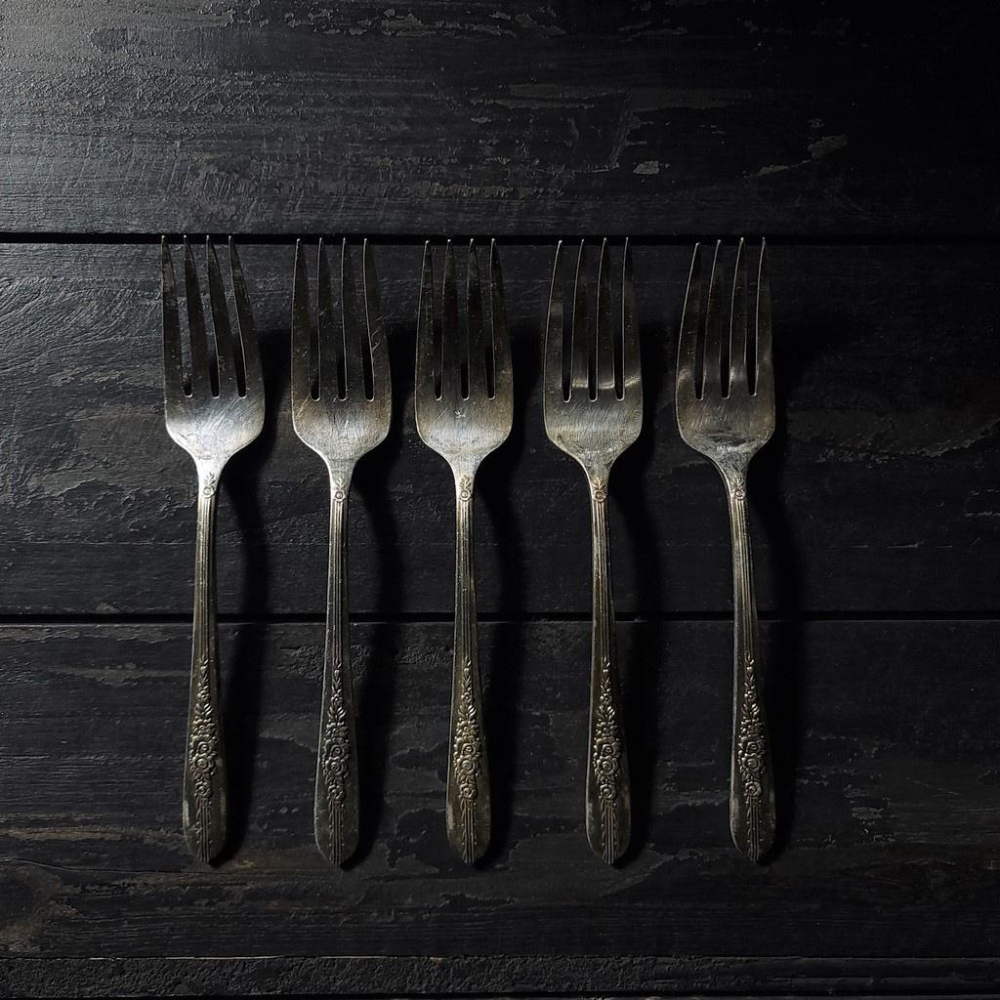 【台灣現貨】歐式復古鍍銀叉子組(5支)-Vintage舊物中古老件二手銀器西洋叉子鍍銀餐具銀器叉子拍照道具 | 伯爵古器