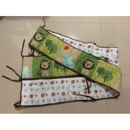 二手已清洗無髒污 嬰兒床床圍 綠色小獅子,色彩鮮豔 一片式 尺寸400x25公分