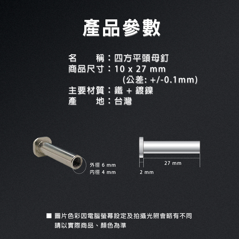 ■每組含四方平頭母釘* 8 顆 + 內六角螺絲* 8 顆