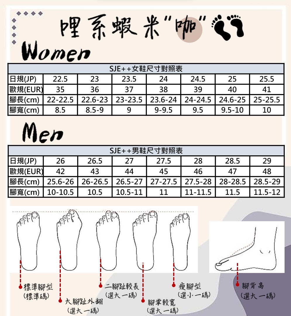 💕寬版腳 & 肉肉腳建議可拿大一碼