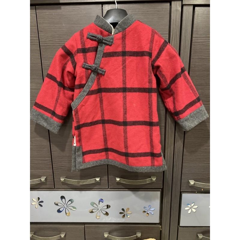 紅色格紋喜氣外套 兒童外套 棉襖 鋪棉 保暖