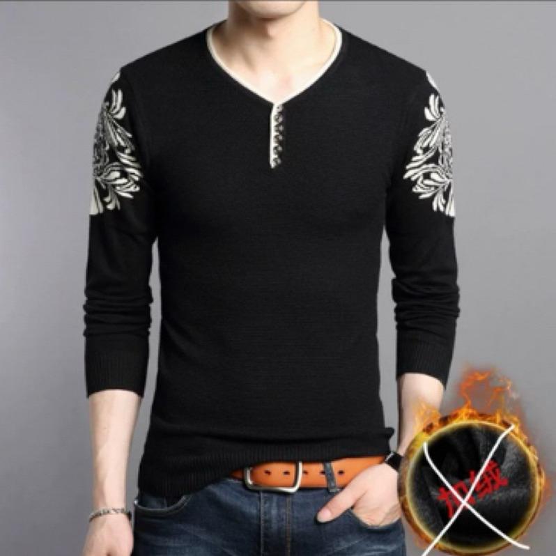 韓版 細針織黑色鈕扣男版上衣 針織 超舒服 V領 上衣