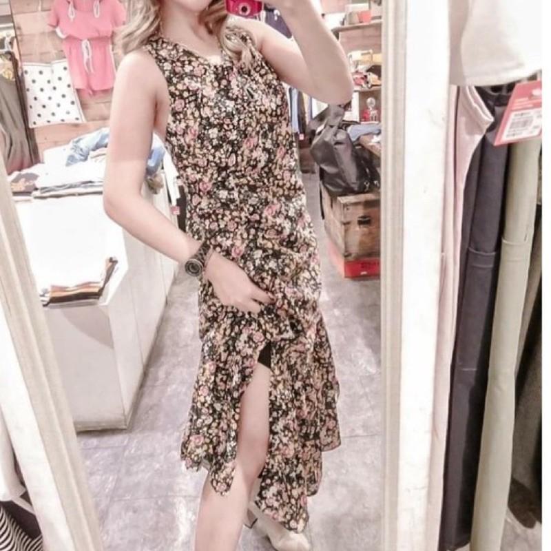 雪紡花朵挖背雪紡連身長裙 連身洋裝 連身長裙 開衩長裙