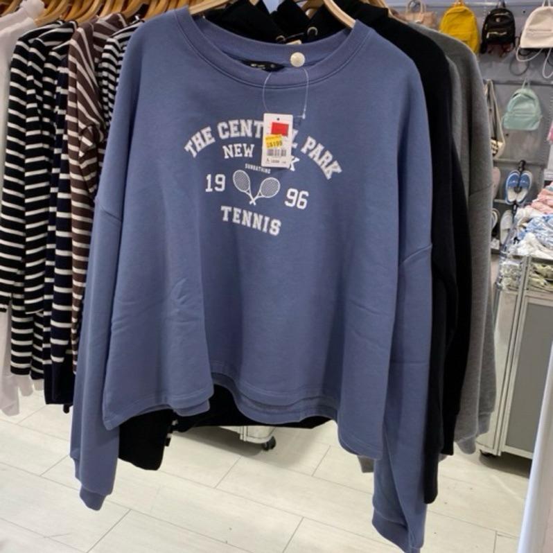 NET 刷毛藍色短版寬鬆大學T /size L/女上衣