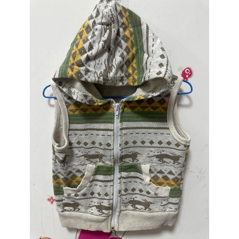 自然風小鹿條紋感連帽口袋背心/5碼90公分穿/背心上衣