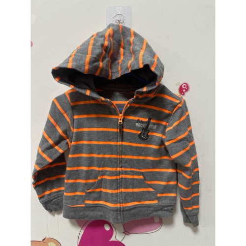 約90公分兒童外套/橘色拼接灰色兒童條紋外套/連帽外套/薄外套
